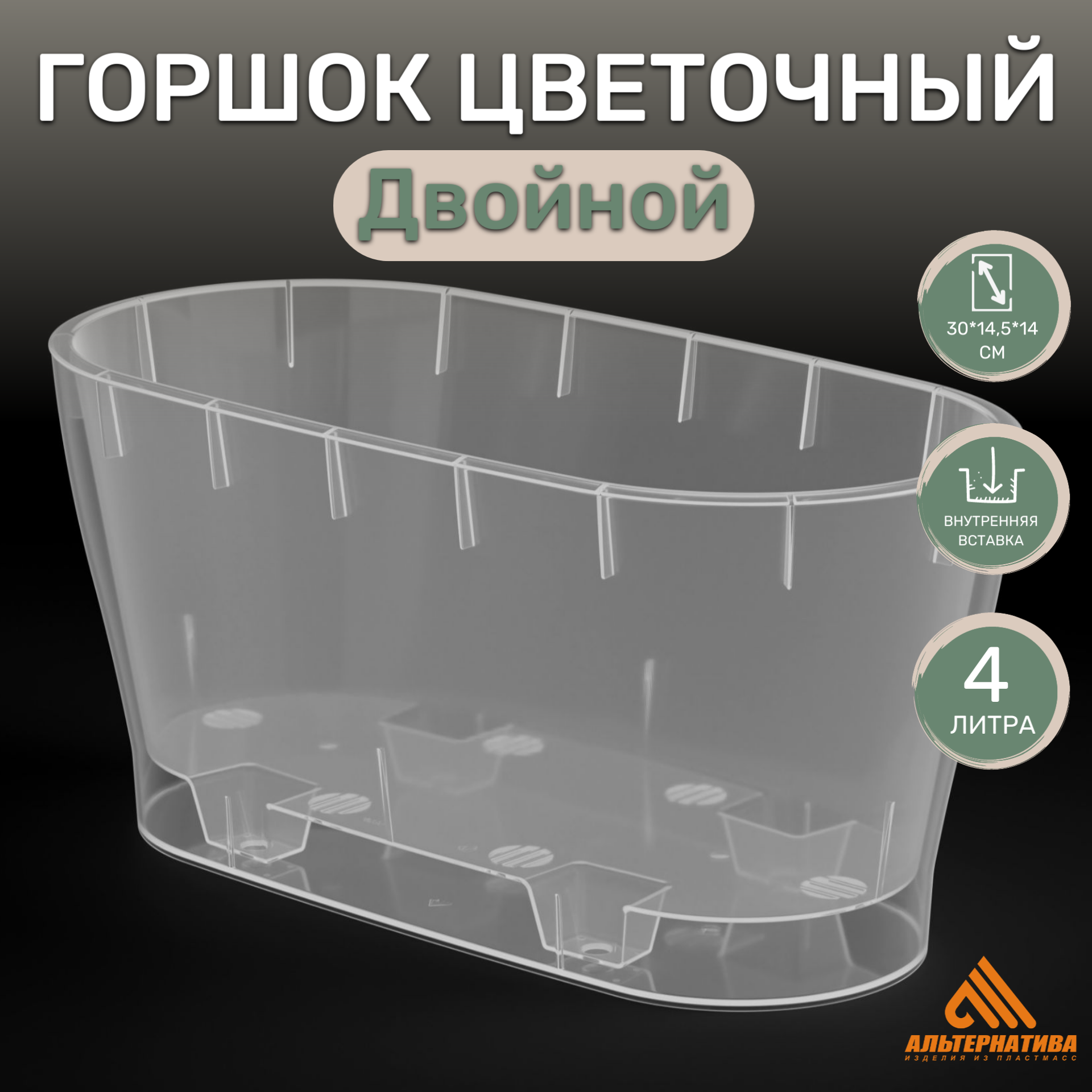 Купить Горшок для цветов / кашпо овальный двойной с автополивом Лея 4л, Прозрачный Альтернатива 14,5х30х14см