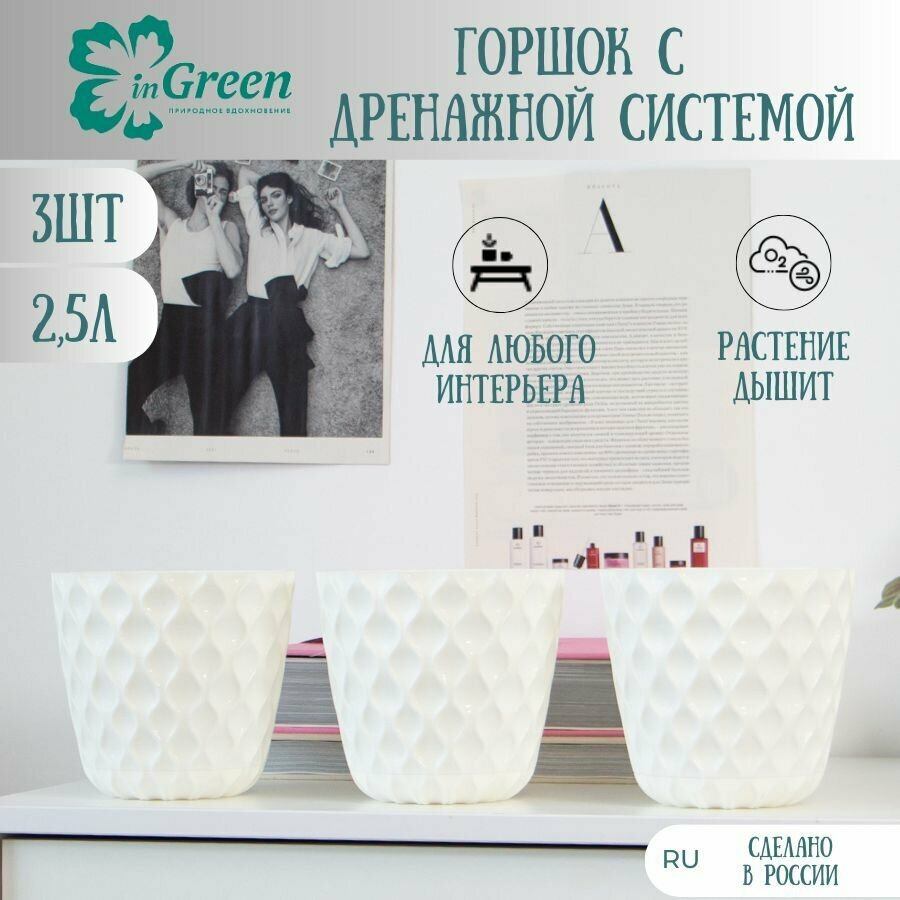 Набор горшков InGreen "Wave" для цветов с дренажной сеткой, 2,5 л, 3 шт интересное: