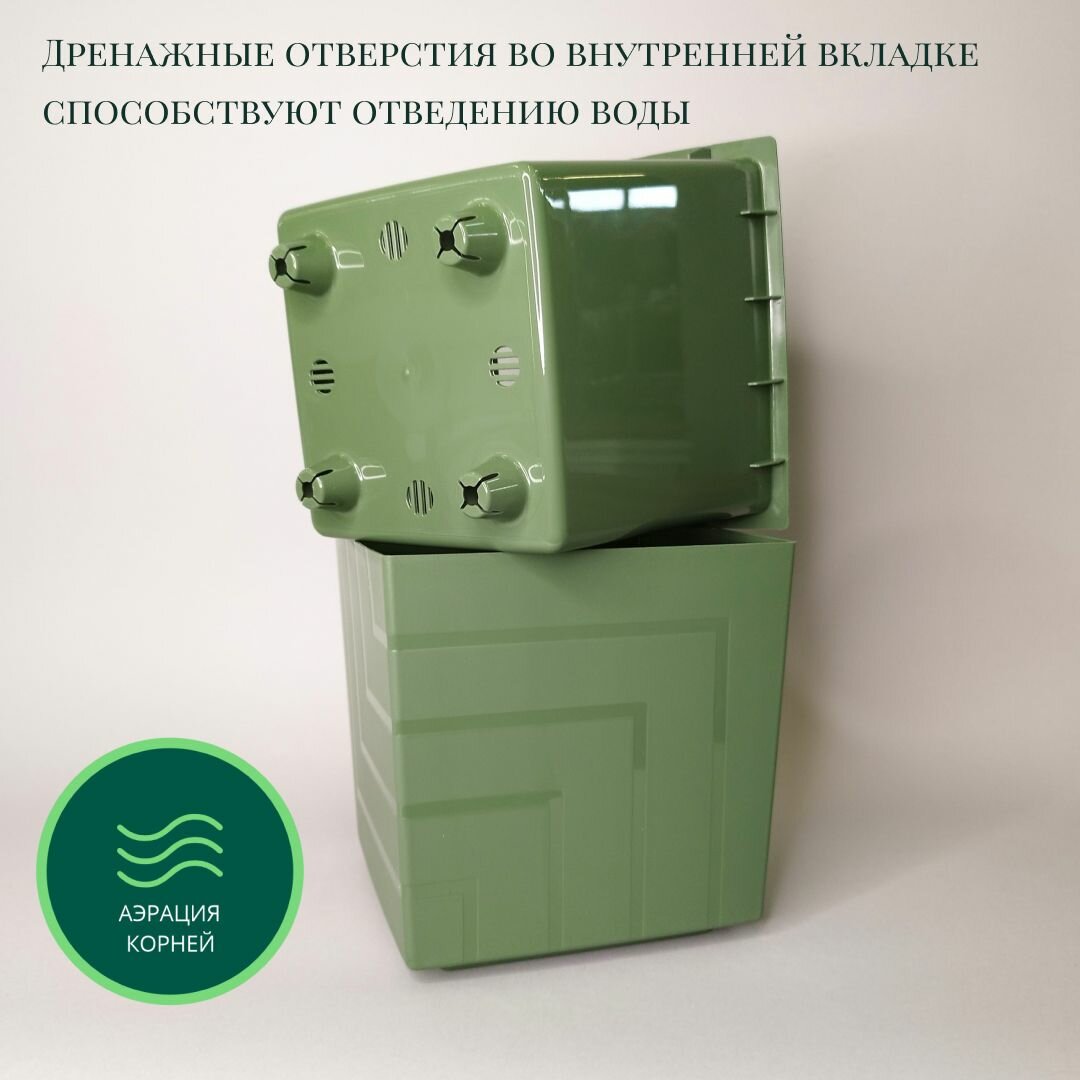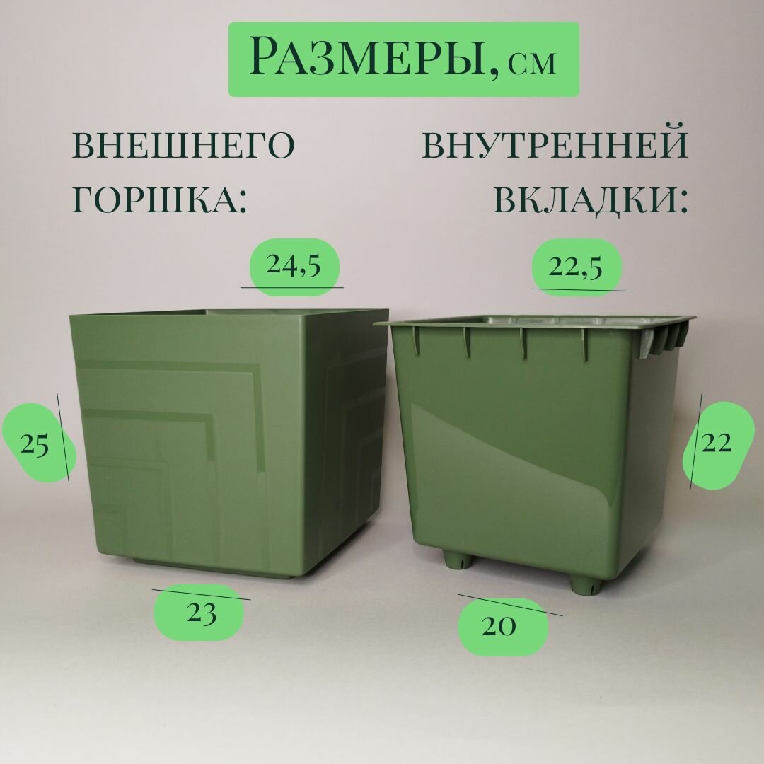 Горшок для цветов Liveingreen "Сигма", пластик, 4,5 л, 24х24х14 см, форма миска, со вставкой, цвет Нефрит