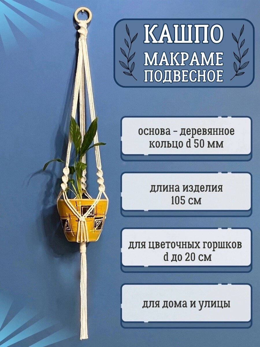 Кашпо плетеное макраме подвесное для цветочных горшков, 105 см, 1 шт интересное:
