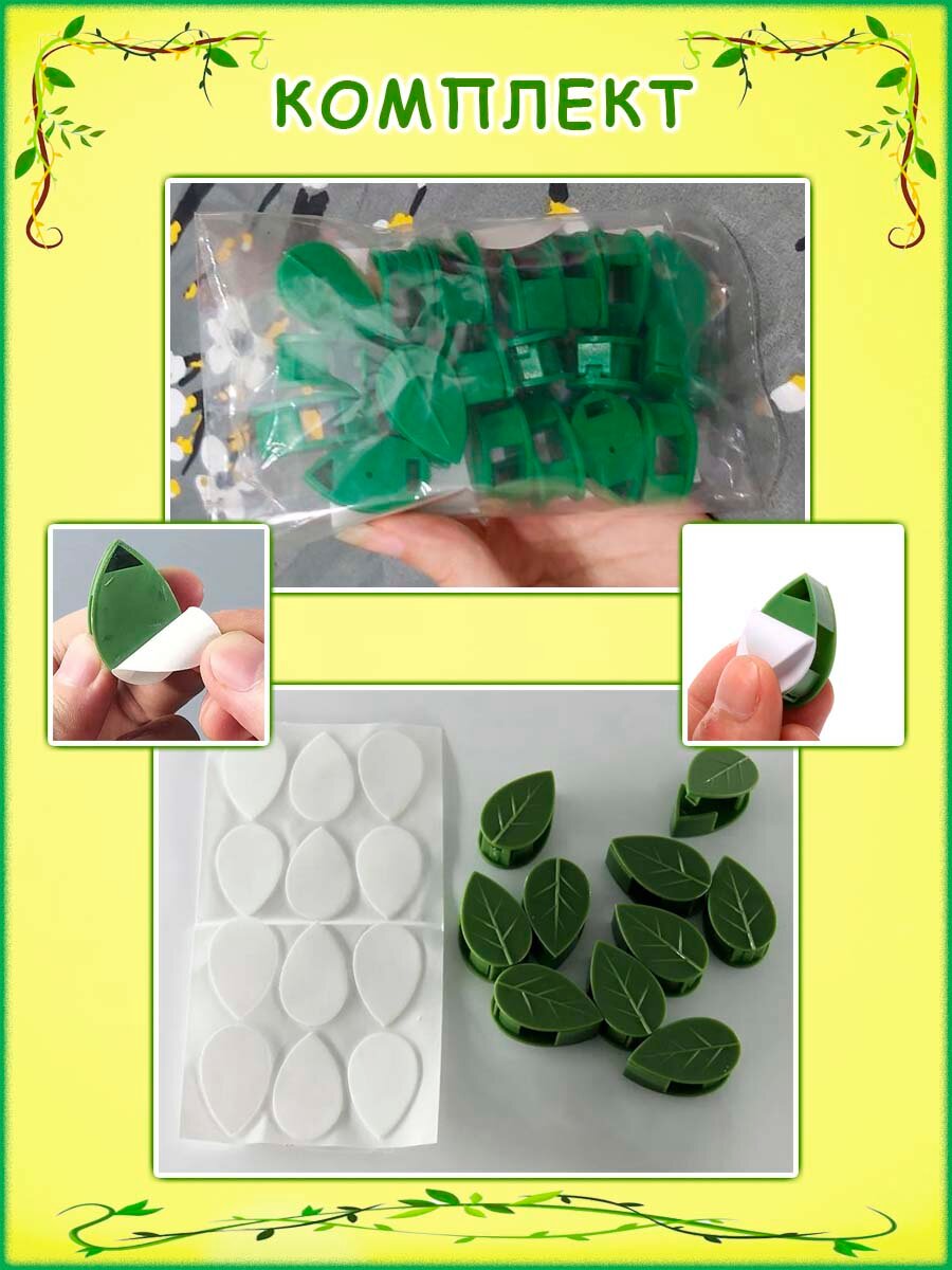 Клипсы-держатели для комнатных растений "Листочки", 10 штук, пластик, зеленые, настенные и подвесные интересное: