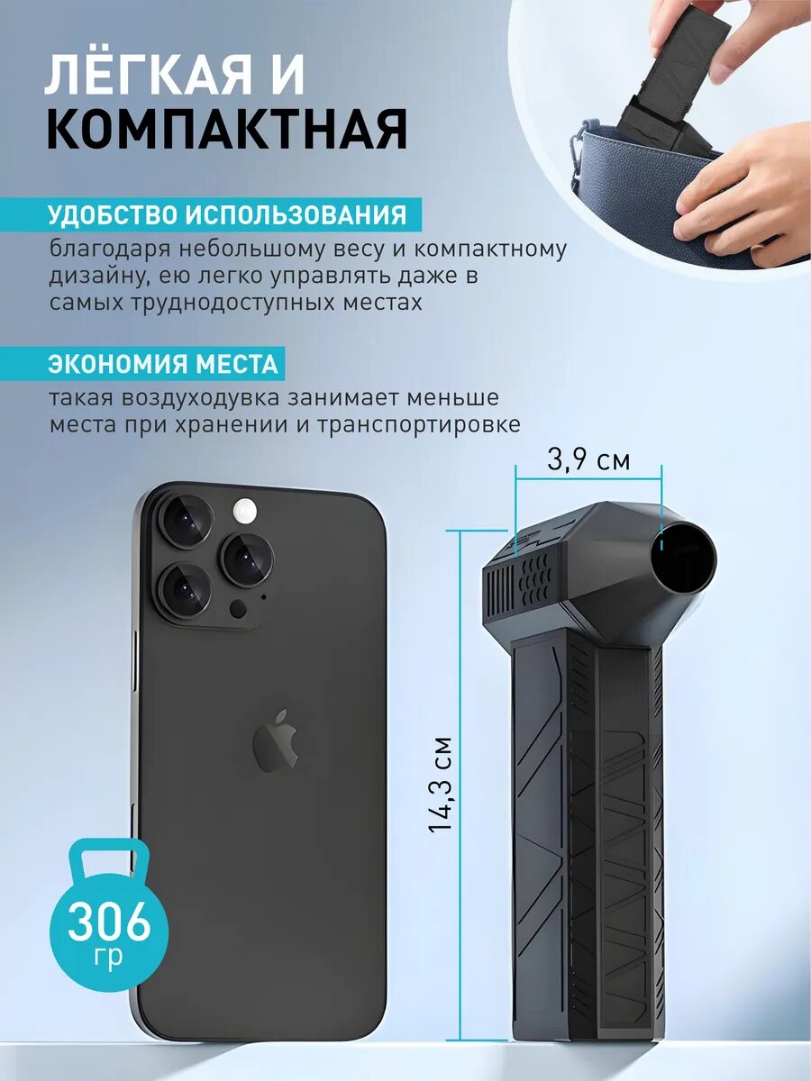 Аккумуляторная воздуходувка REDPRO 3 режима работы, для авто и ПК, Li-Ion, 52 м/с, 130000 об/мин, бесщеточный двигатель интересное:
