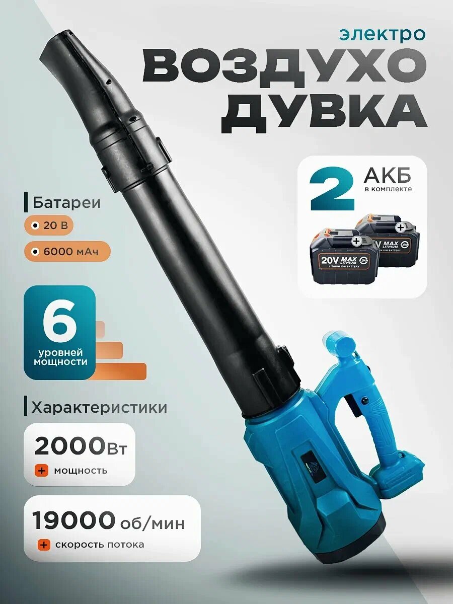 Аккумуляторная воздуходувка HomeVoltPro, 2 Li-ion аккумулятора, 6000мАч, 20В интересное: