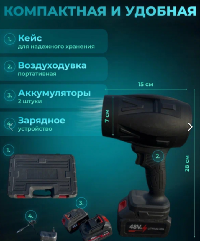 Мощная воздуходувка, беспроводная воздуходувка 1000Вт, воздуходувка в кейсе с 2 аккумуляторами интересное: