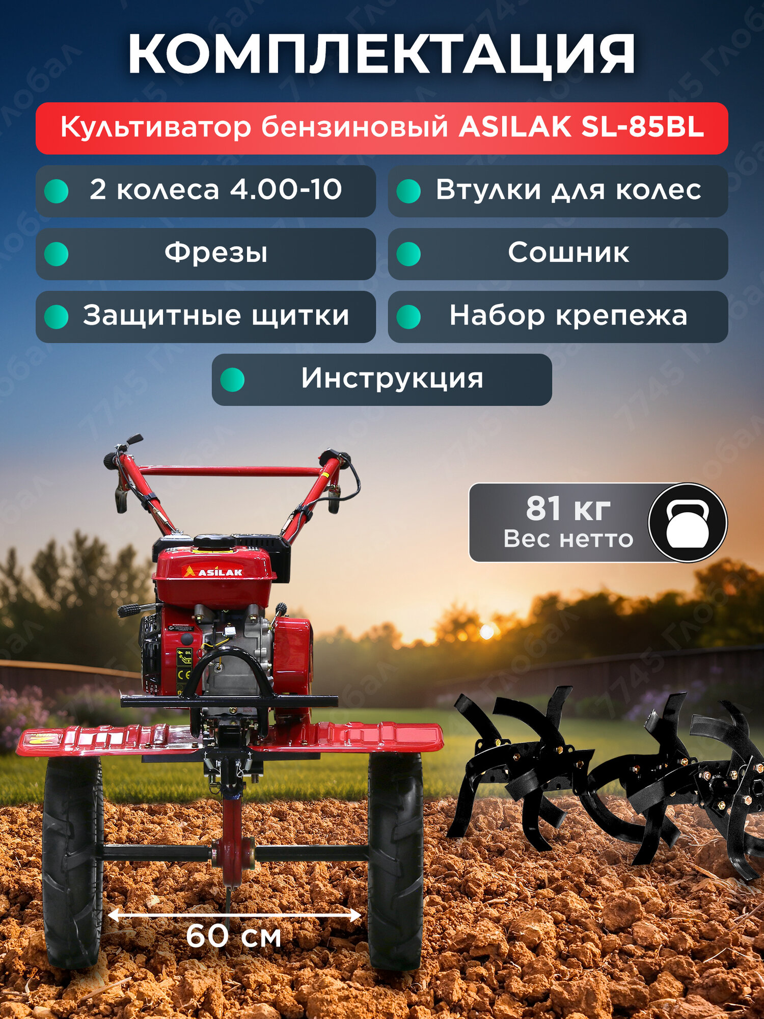 Культиватор бензиновый ASILAK SL-85BL с колесами 4.00-10 (AS2315-2) интересное: