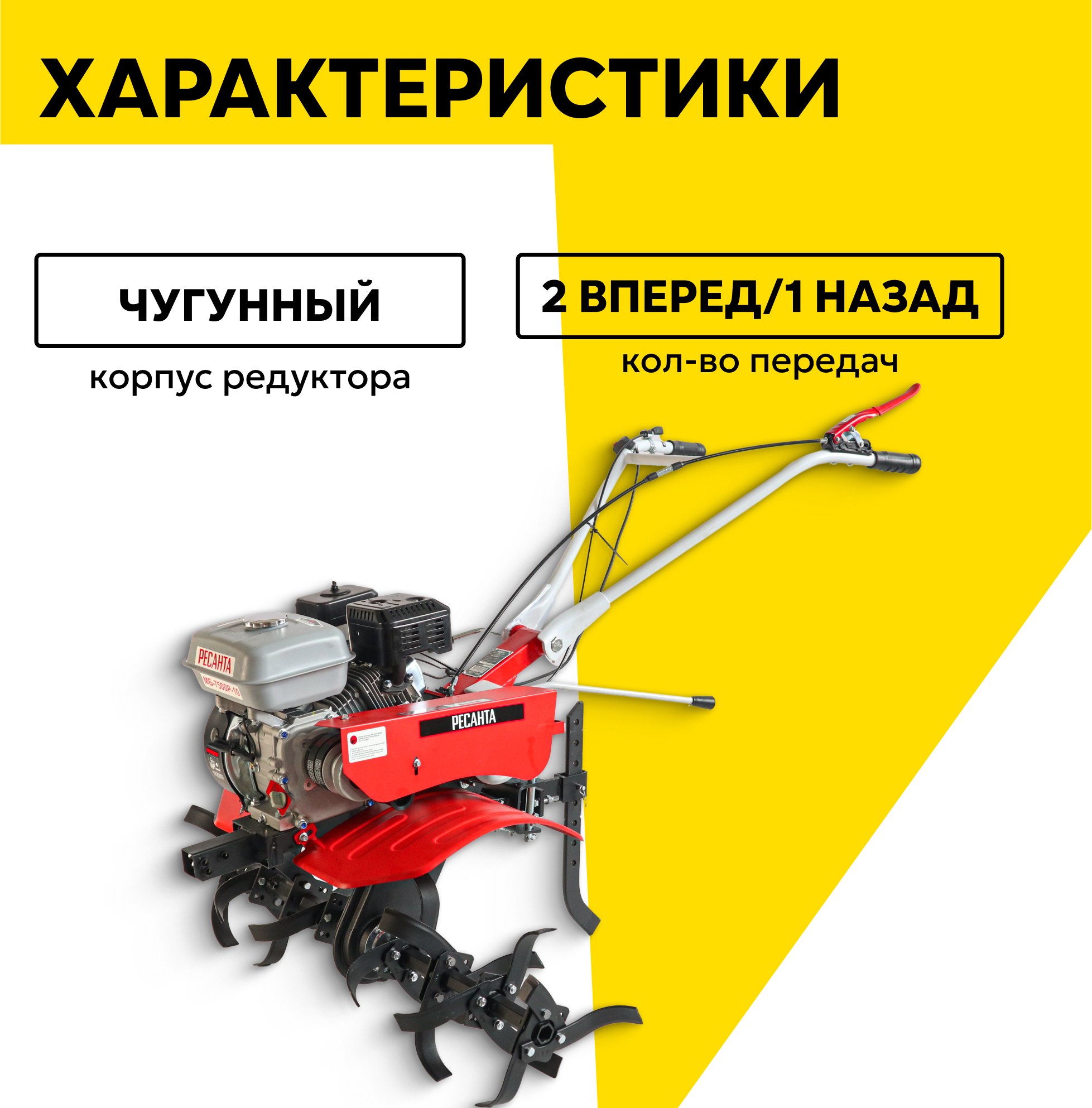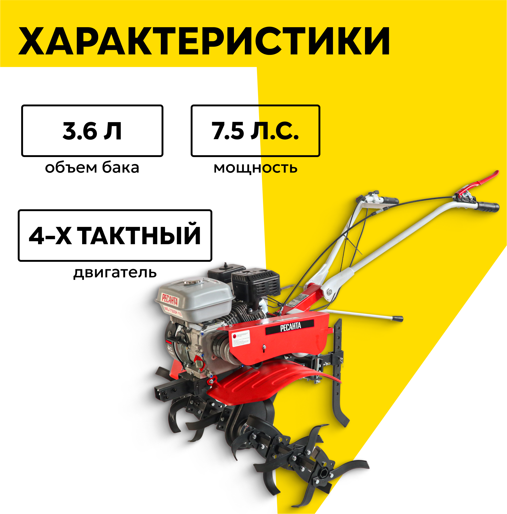 Сельскохозяйственная машина Ресанта МБ-7500Р-10, 7.5 л. с, четырехтактный, бензин, бак – 3.6 л, ширина – 100 см интересное: