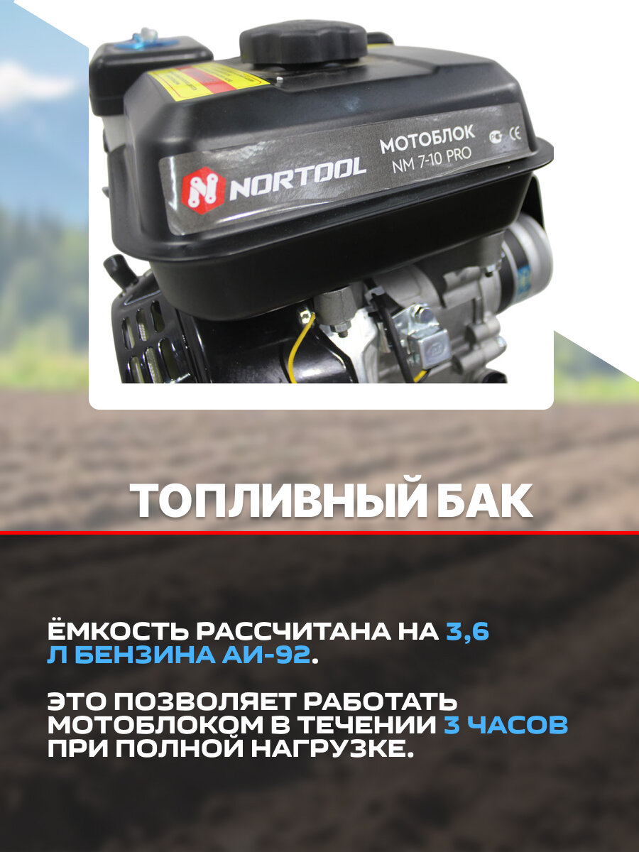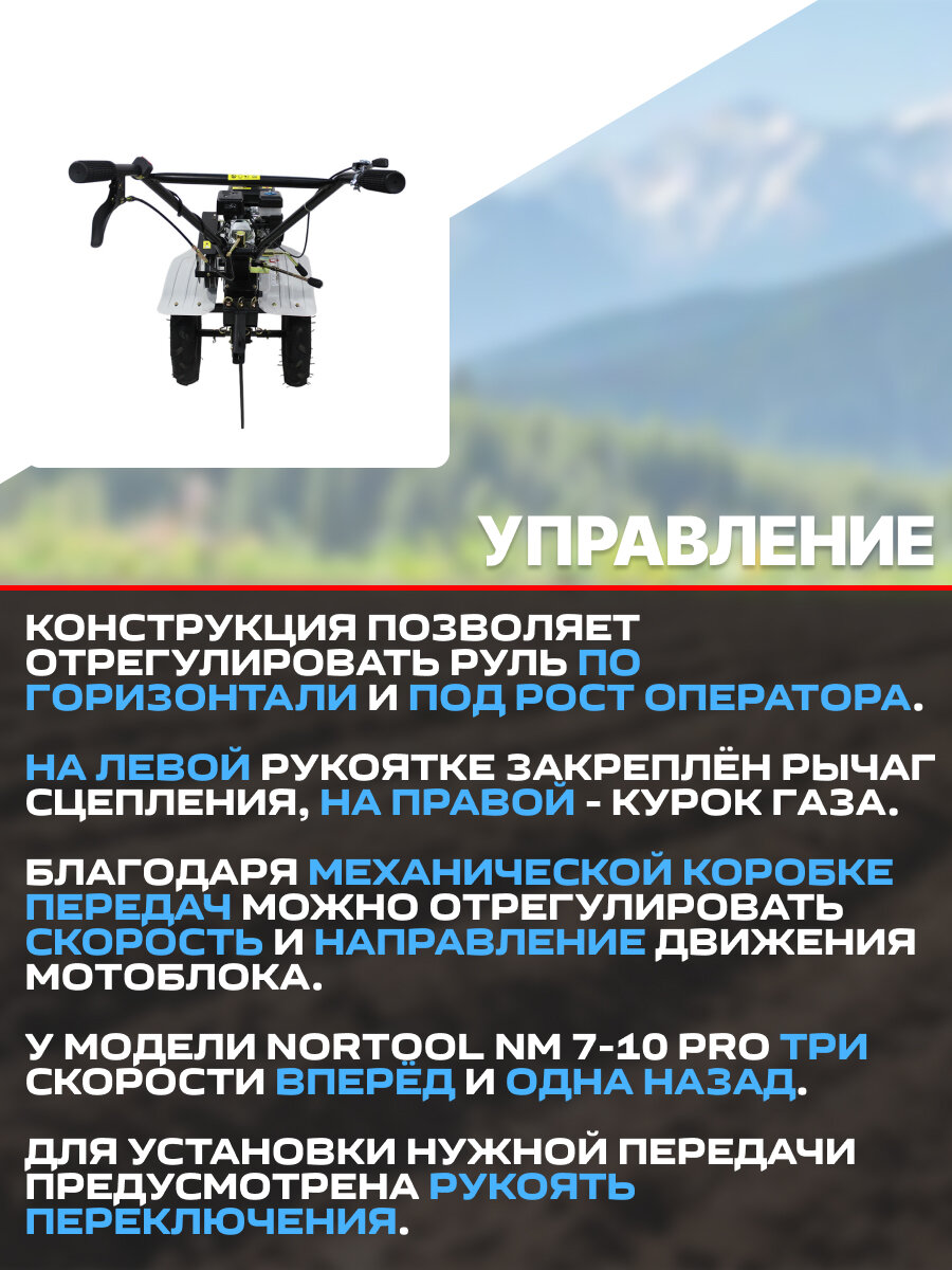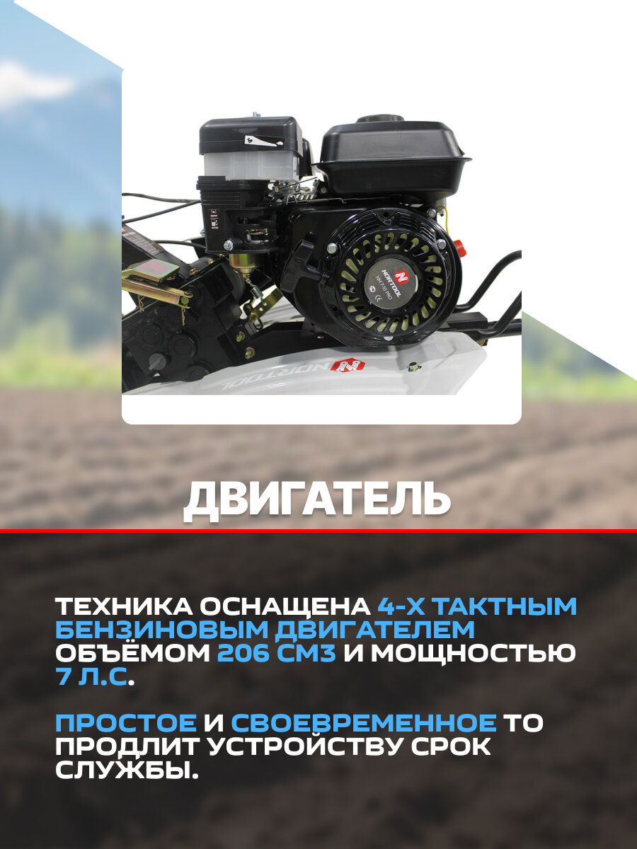 Мотоблок Nortool NM7-10PRO, глубина вспашки 30 см, максимальная ширина обработки до 120 см интересное: