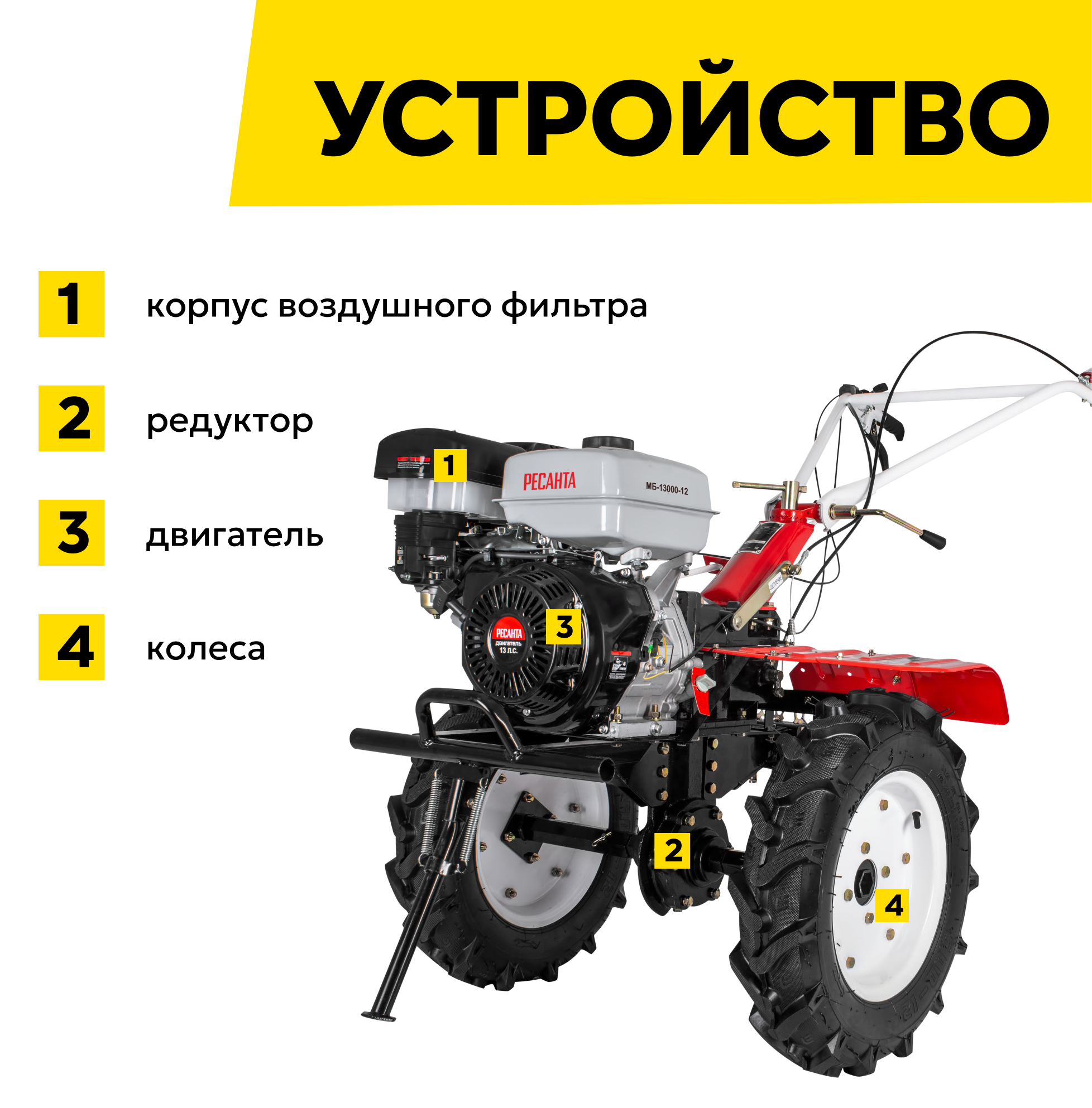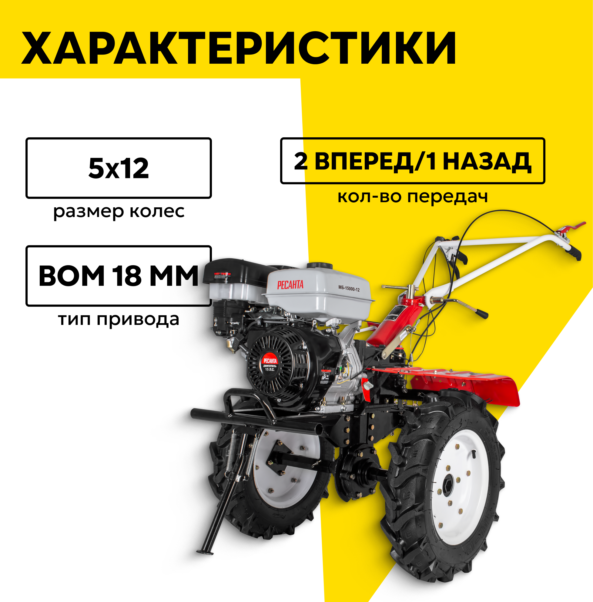Сельскохозяйственная машина Ресанта МБ-15000-12, 15 л. с, четырехтактный, бензин, бак – 6 л, ширина – 140 см интересное: