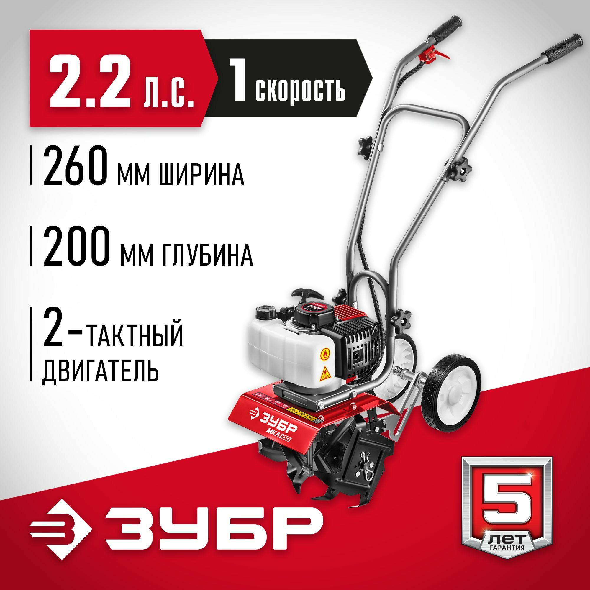 Культиватор бензиновый ЗУБР 52 см3, 2.2 л. с, 260 мм ширина обработки, 1 скорость, Мастер интересное: