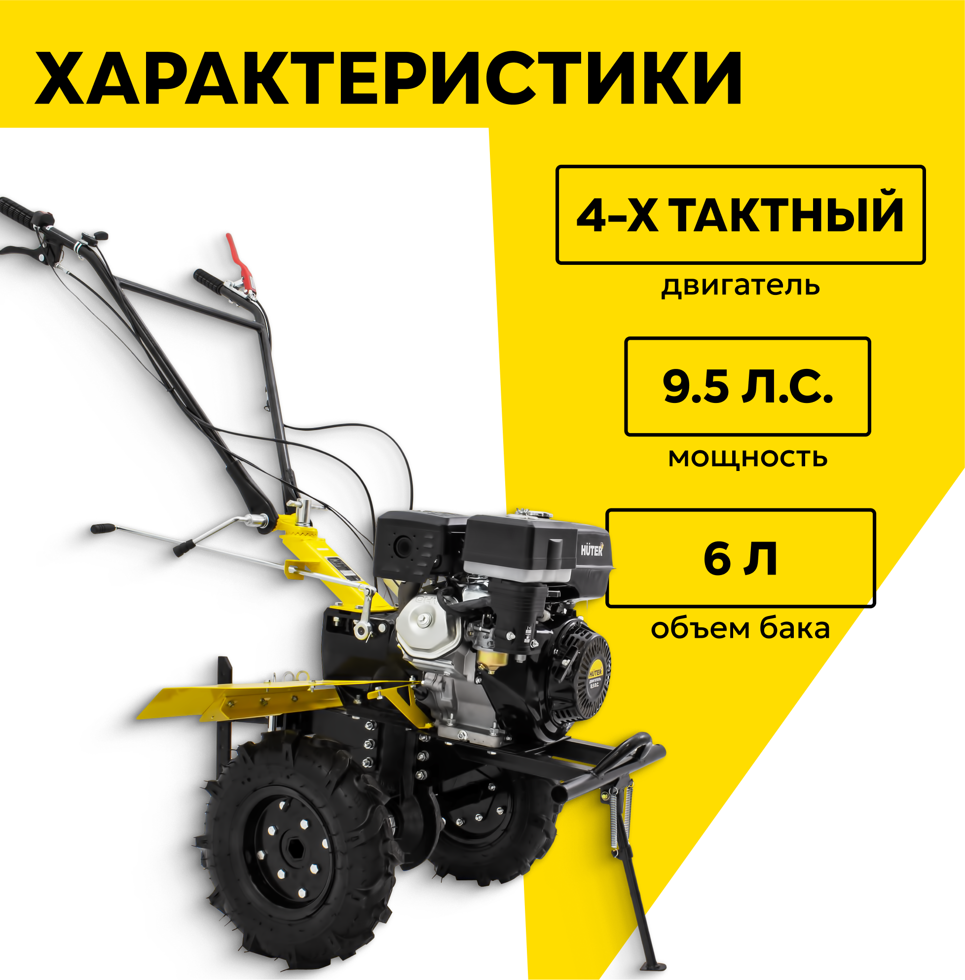 Сельскохозяйственная машина HUTER MK-9500P, 9.5 л. с, четырехтактный, бензин, бак – 6 л, ширина – 115 см интересное: