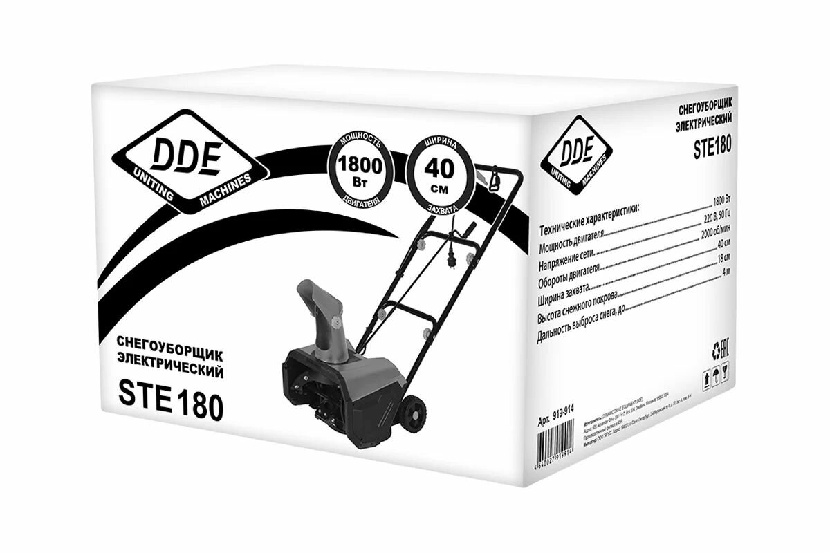Ниже Вы можете прочитать отзывы на Снегоуборщик электрический DDE STE180 (1,8 кВт, захват 40/18 см) / лопата снегоуборочная, ознакомится с подробными характеристиками, посмотреть интересные обзоры и фотографии на Снегоуборщик электрический DDE STE180 (1,8 кВт, захват 40/18 см) / лопата снегоуборочная.