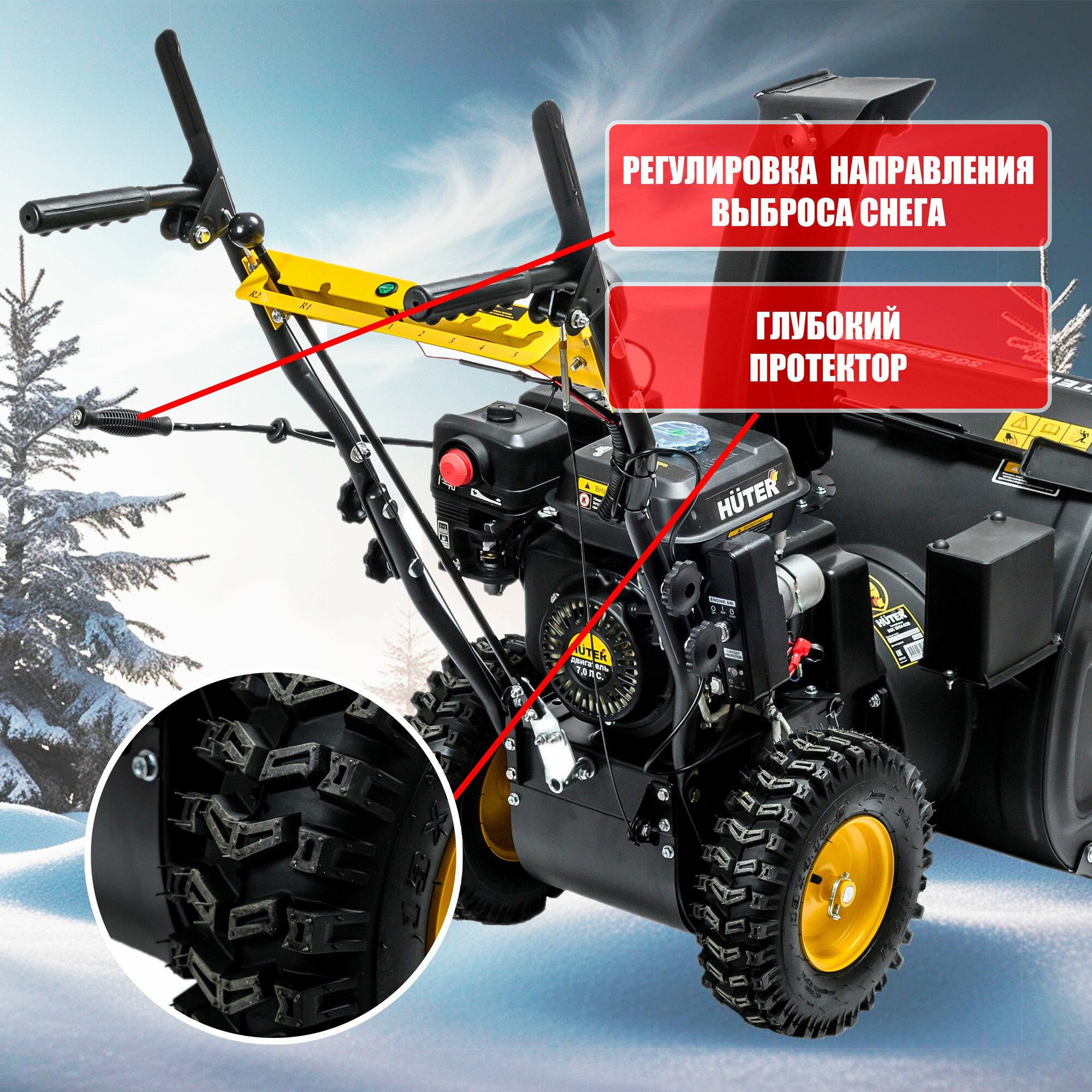 Снегоуборщик бензиновый самоходный Huter SGC 56/54-5/2, 7 л. с, выброс 15 метров, размер ковша 56х54