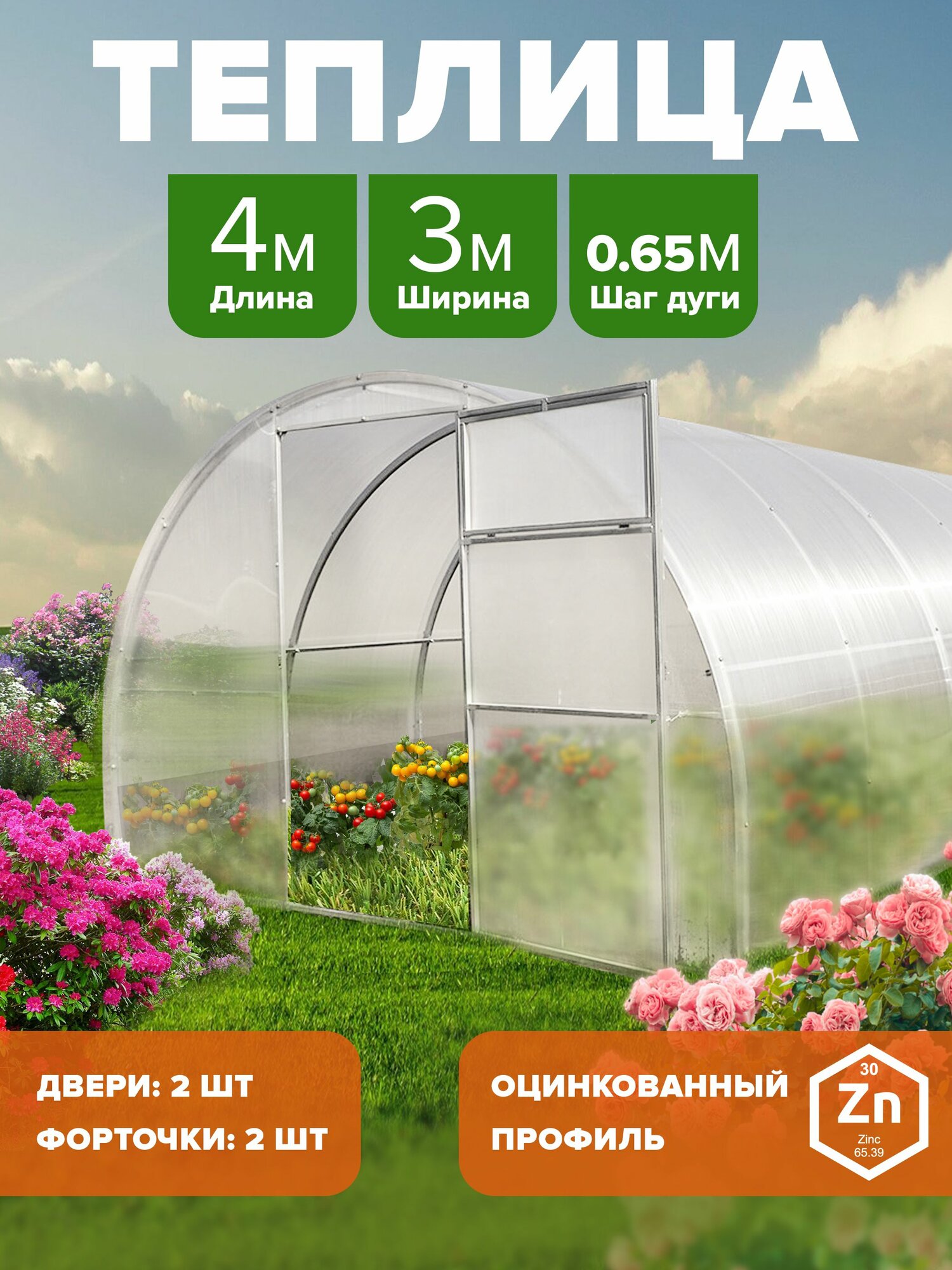 Купить Теплица арочная с поликарбонатом, дуги 20 на 20. 4х3х2.02 с шагом 0,65 м.