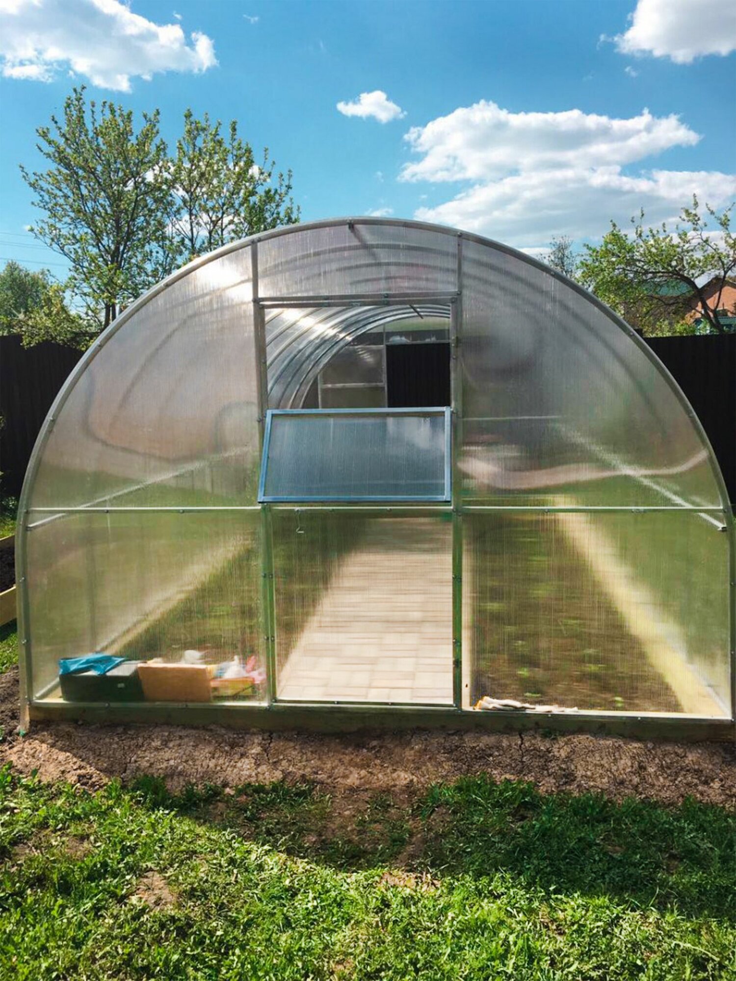 Теплица арочная с поликарбонатом, дуги 20 на 20. 4х3х2.02 с шагом 0,65 м.