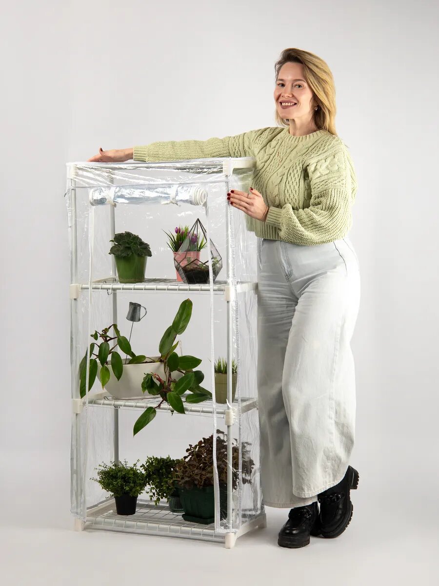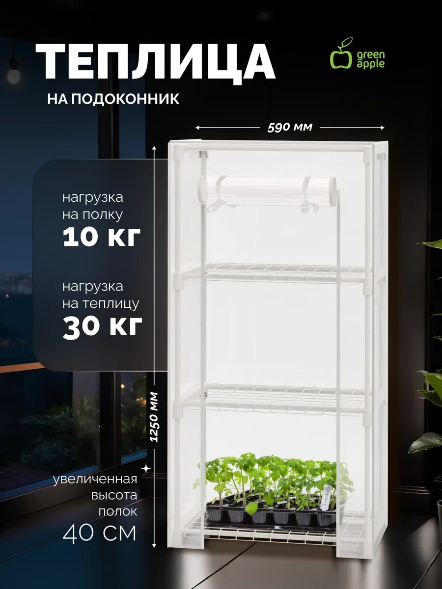 Теплица для подоконника GREEN APPLE GA-House-3 59х30x125 3 яруса, прочный корпус интересное: