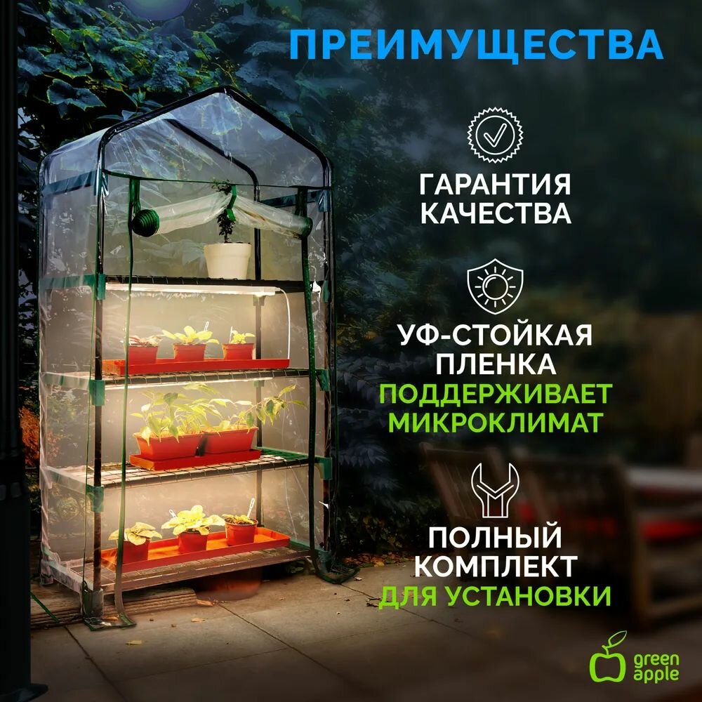 Теплица для подоконника GREEN APPLE GA-House 69х30x125 3 яруса, прочный корпус