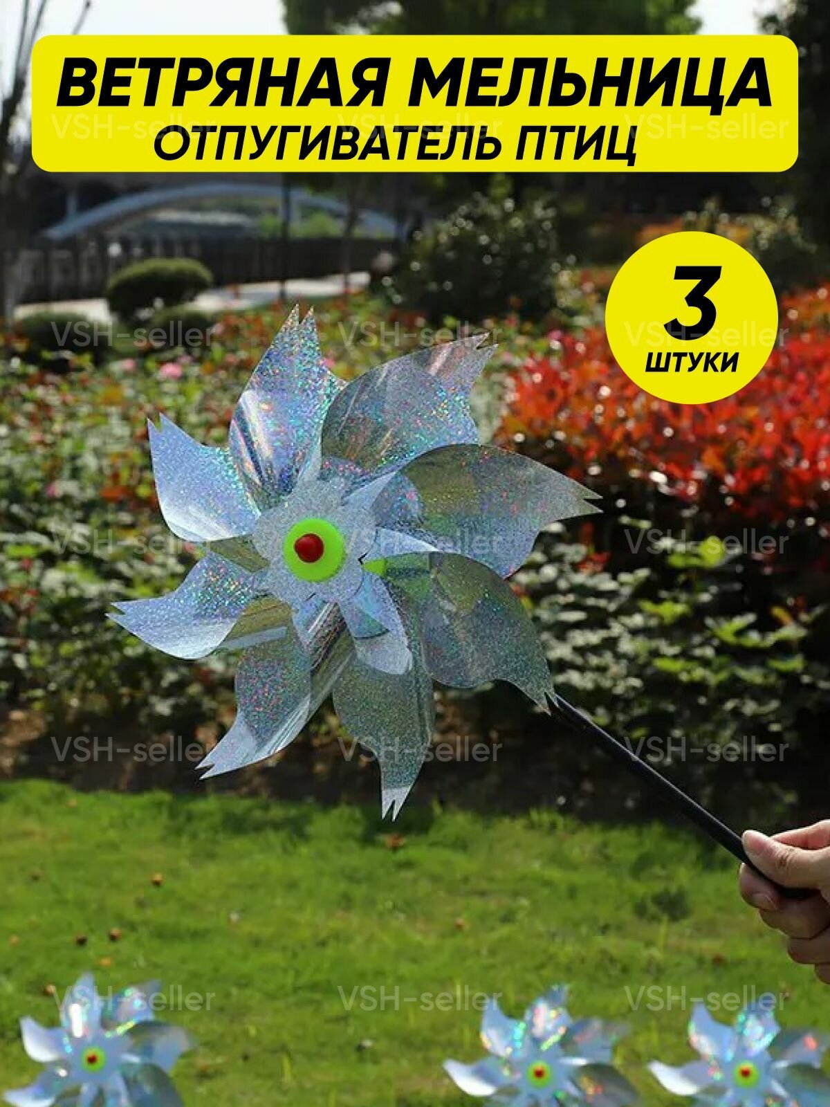 Купить Декор для сада, ветряная мельница светоотражающая, отпугиватель птиц, 3 шт.