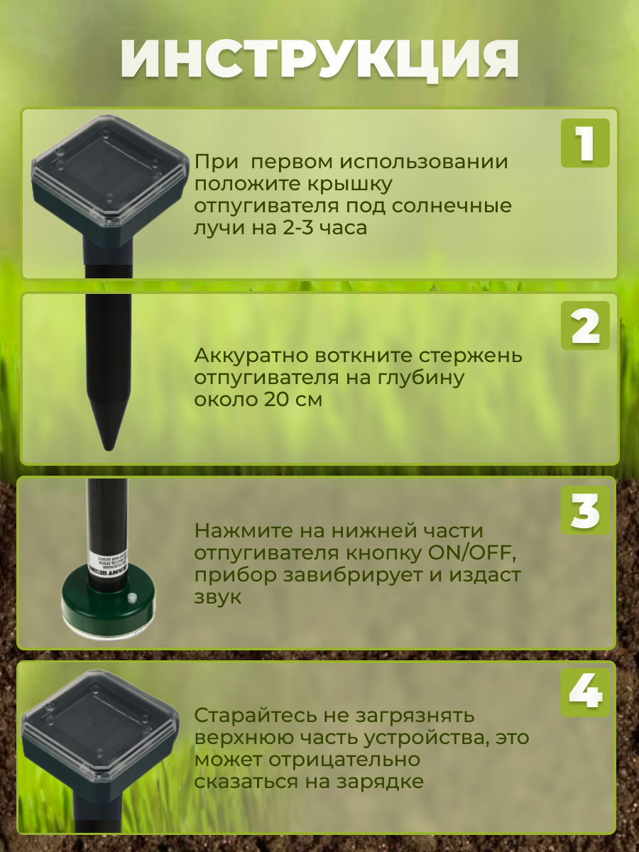 Ультразвуковой отпугиватель от кротов/грызунов/мышей/змей/медведок, 4шт