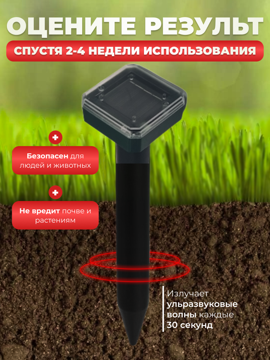 Отпугиватель от кротов, грызунов, мышей на солнечных батареях - 2 штуки интересное: