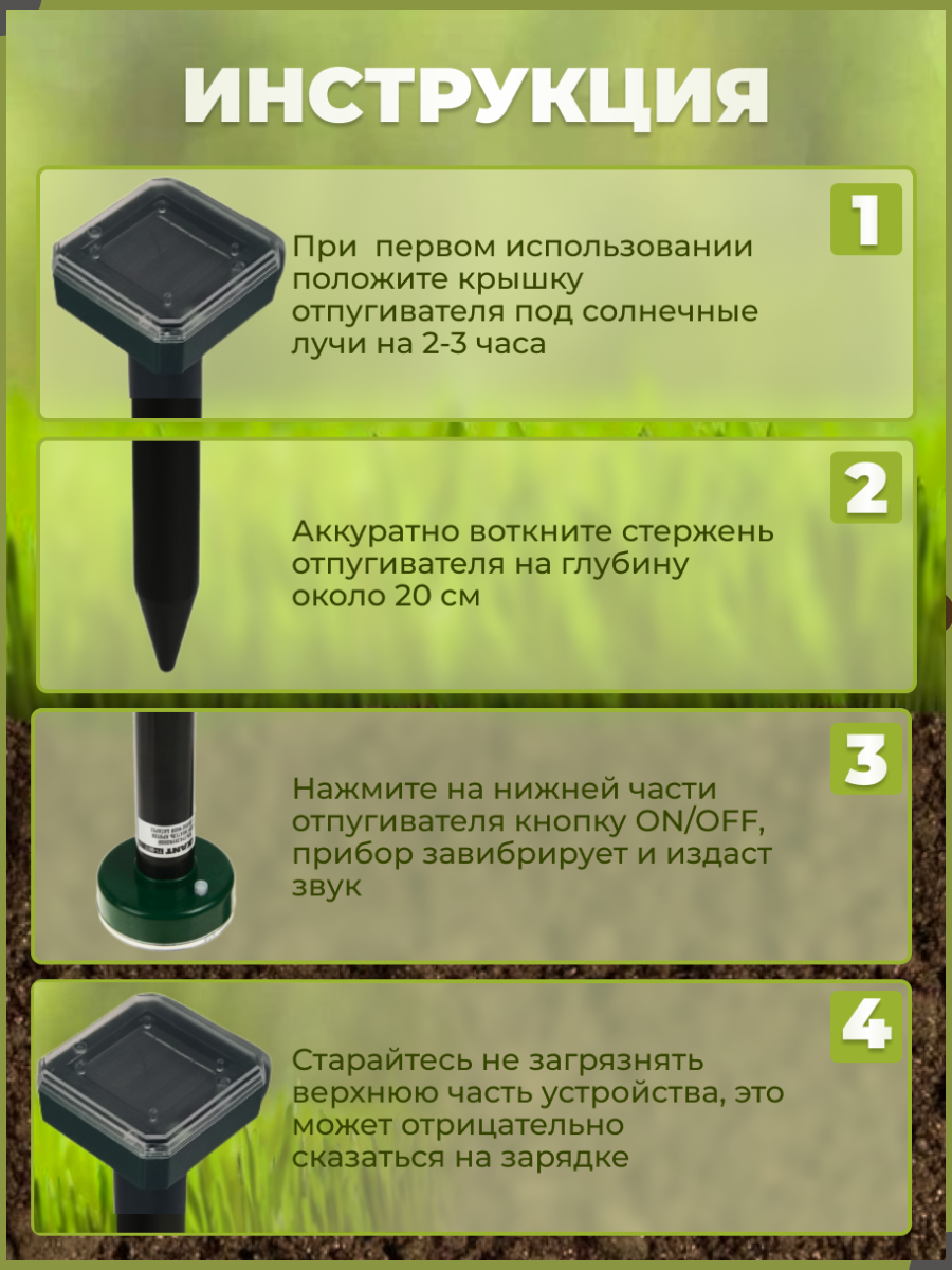 Ультразвуковой отпугиватель от кротов/грызунов/мышей/змей/медведок, 4шт интересное: