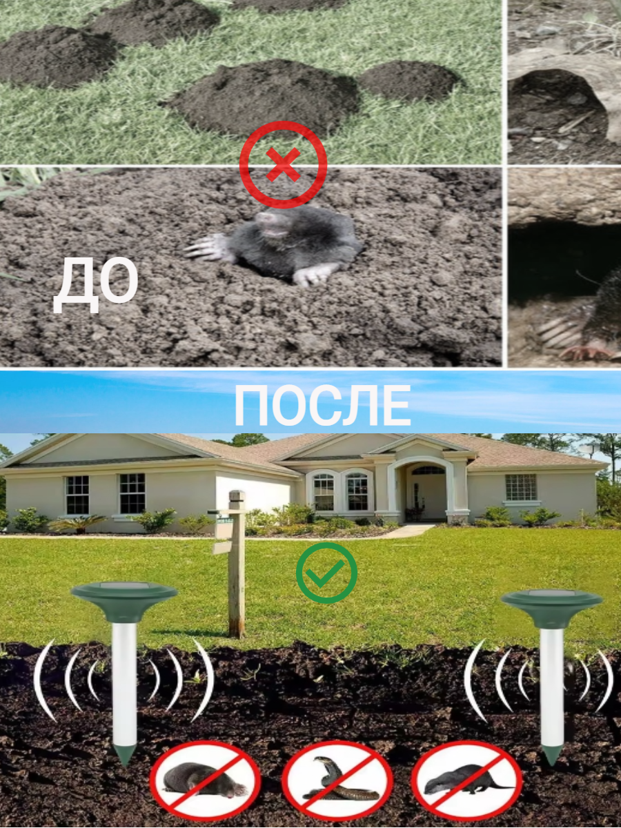 Отпугиватель от кротов , грызунов, мышей, змей, медведок и других вредителей
