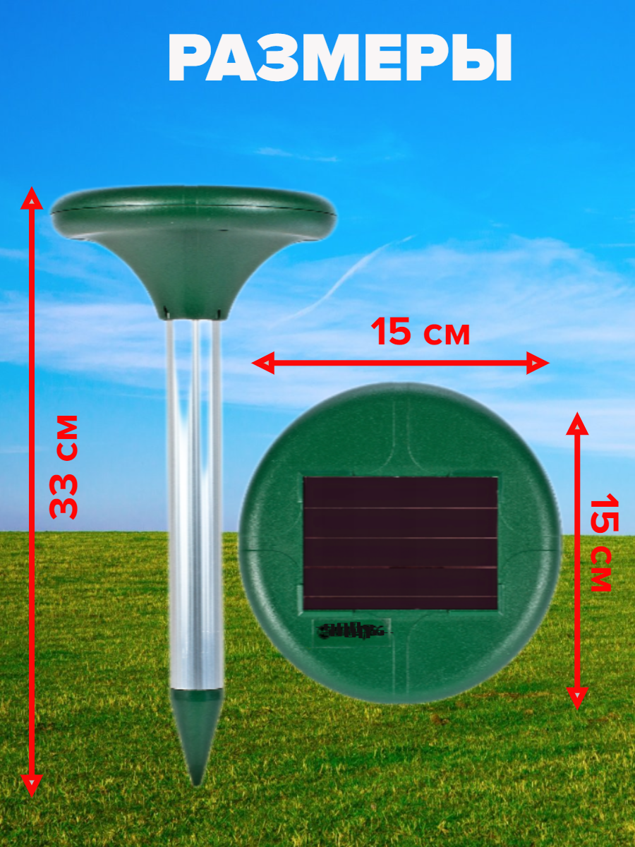 Отпугиватель от кротов, грызунов, мышей на солнечных батареях - 2 штуки