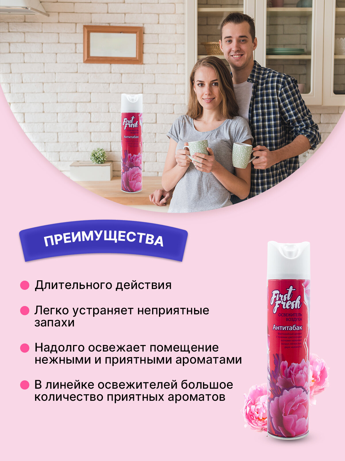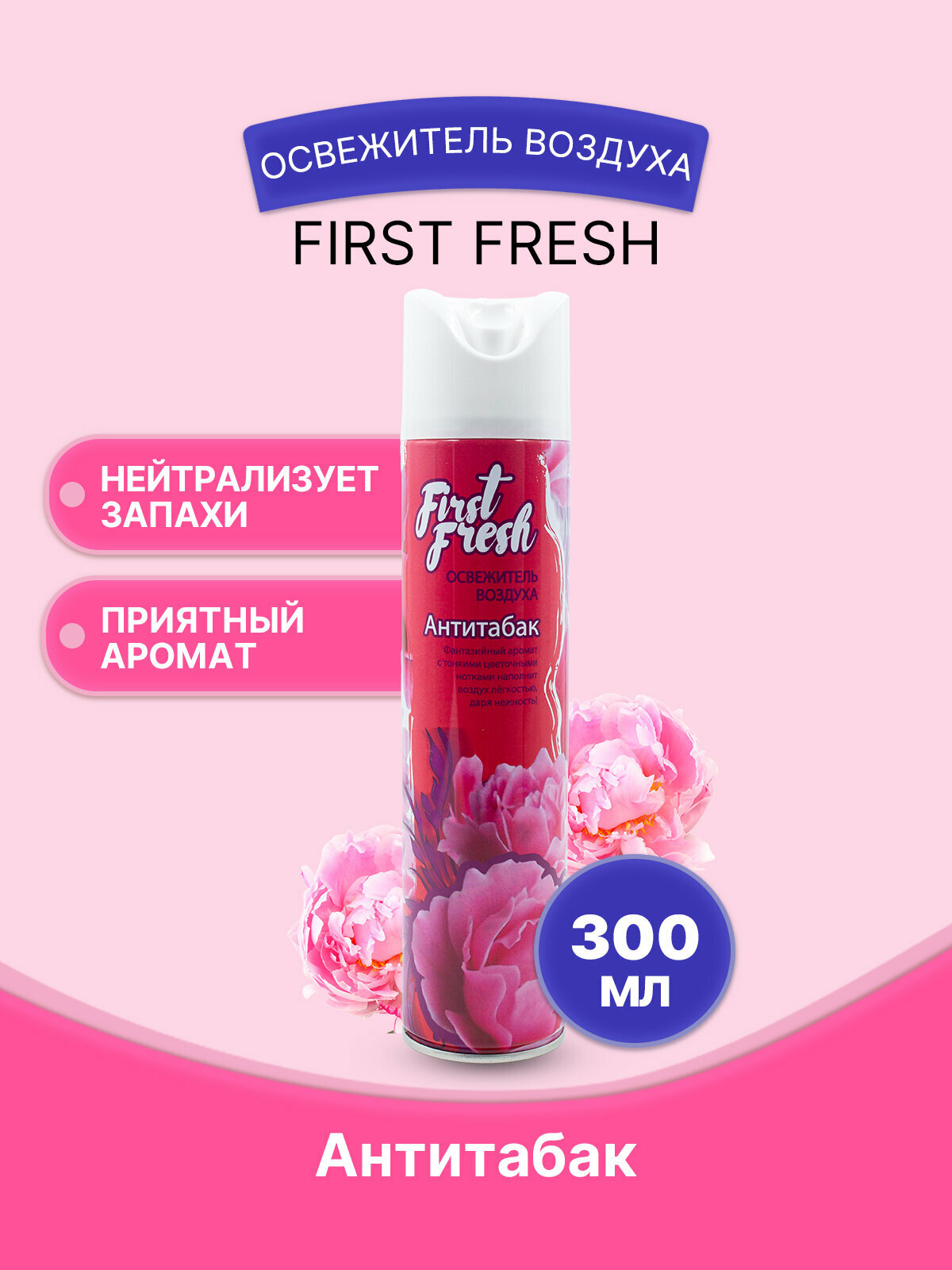 СохранитьОсвежитель воздуха FIRST FRESH, аэрозоль с запахом Антитабак, 300 мл интересное:
