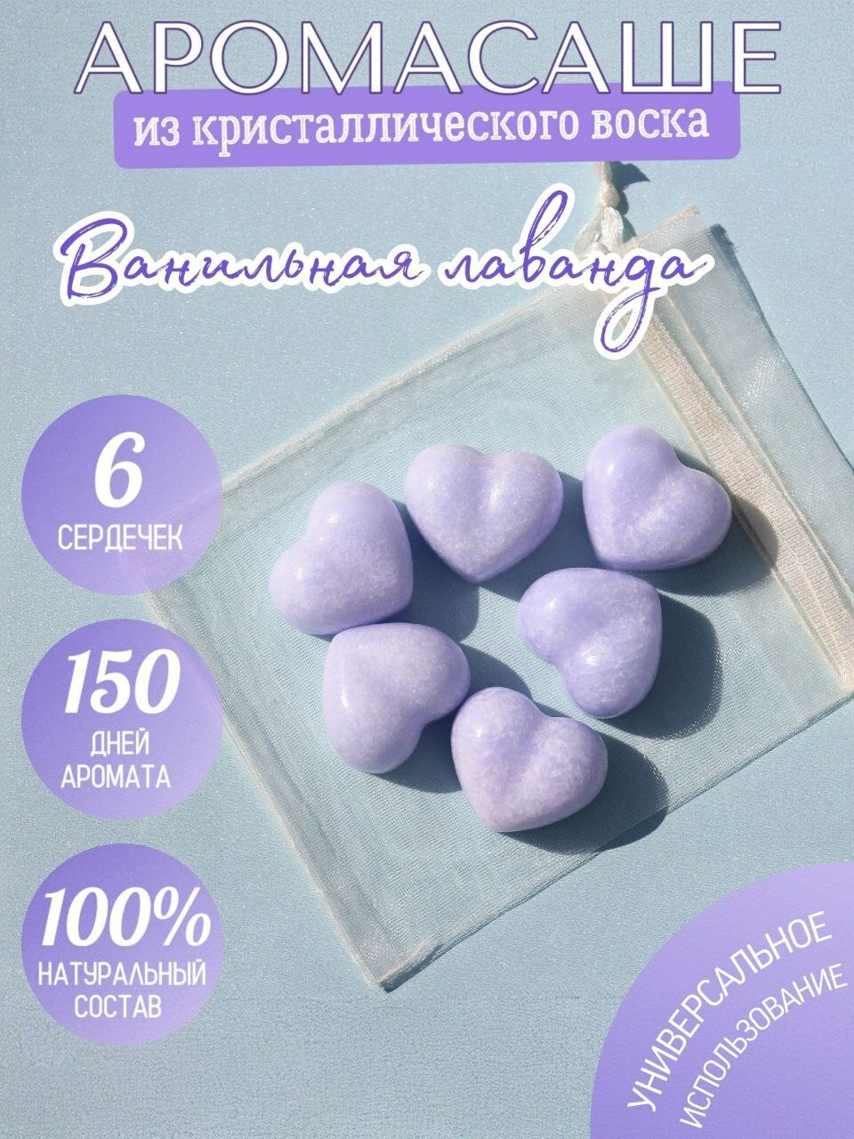 Купить Саше ароматическое сердечки "Ванильная лаванда" для шкафа и белья из кристаллического воска / Аромасаше Aurika Candles