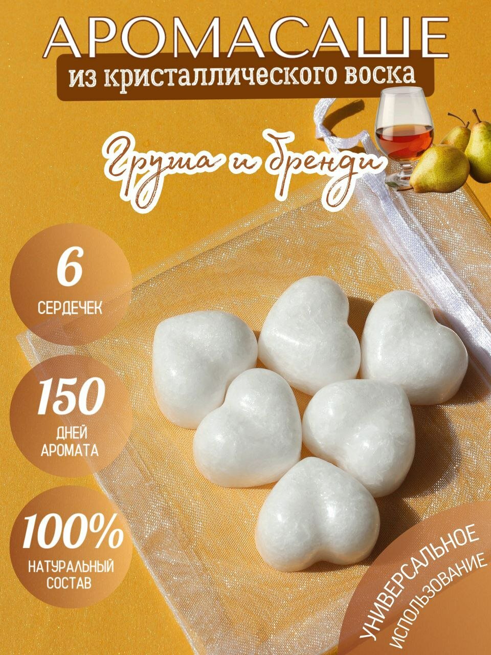 Купить Саше ароматическое сердечки "Груша и бренди" для шкафа и белья из кристаллического воска / Аромасаше Aurika Candles