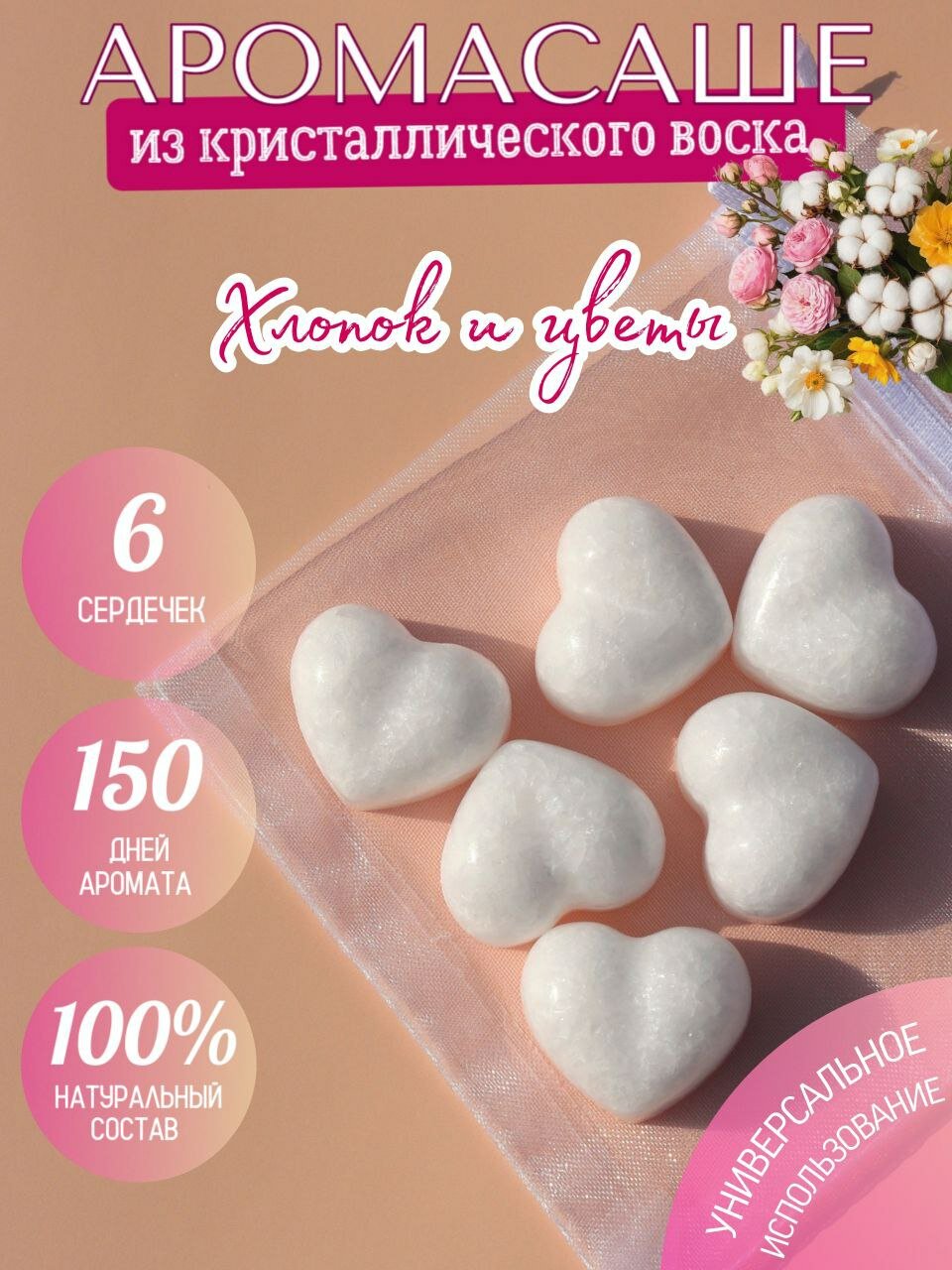СохранитьСаше ароматическое сердечки "Хлопок и цветы" для шкафа и белья из кристаллического воска / Аромасаше Aurika Candles интересное: