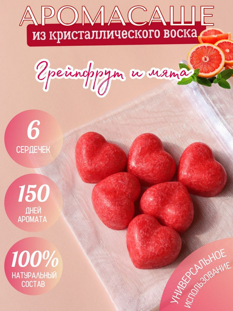 СохранитьСаше ароматическое сердечки "Грейпфрут и мята" для шкафа и белья из кристаллического воска / Аромасаше Aurika Candles интересное: