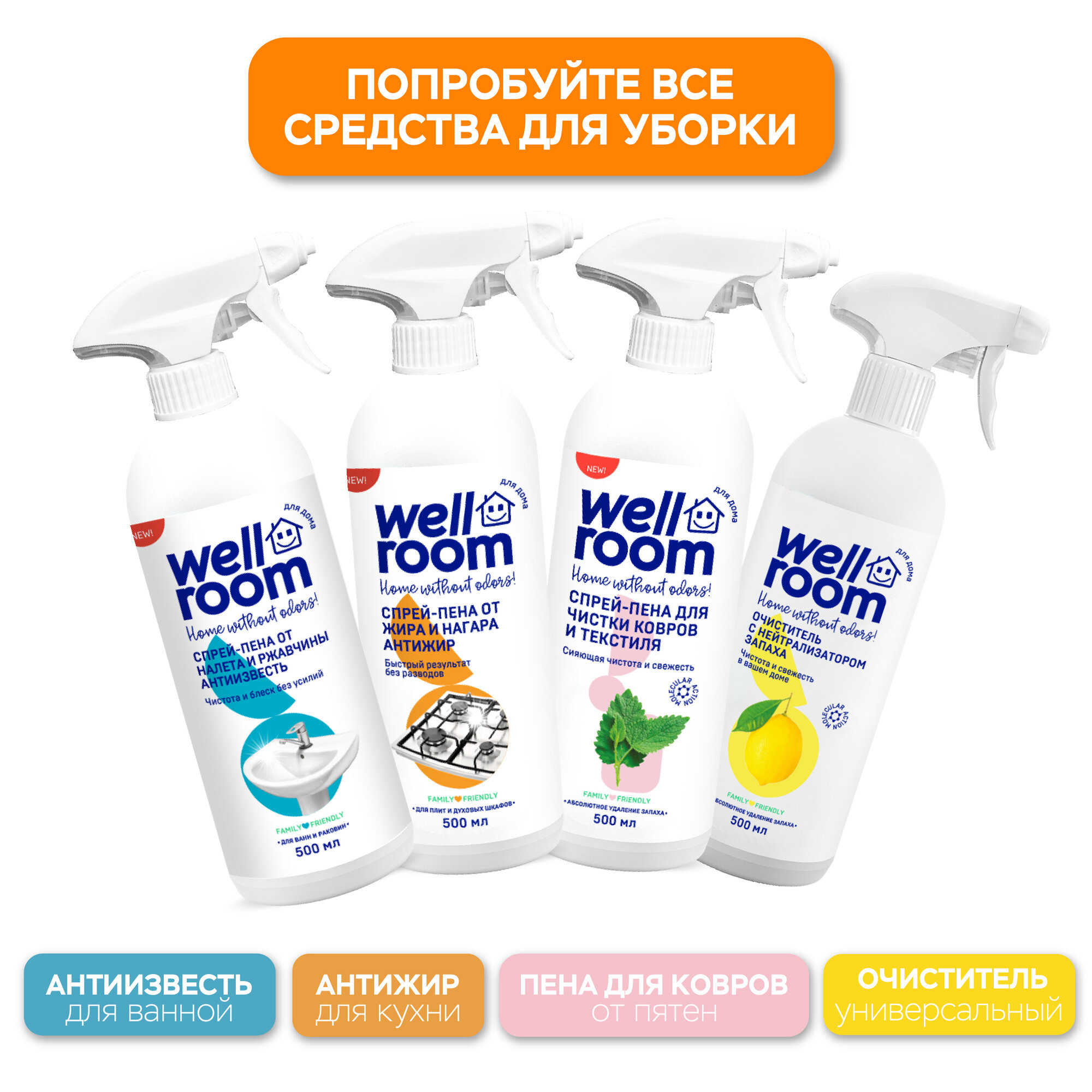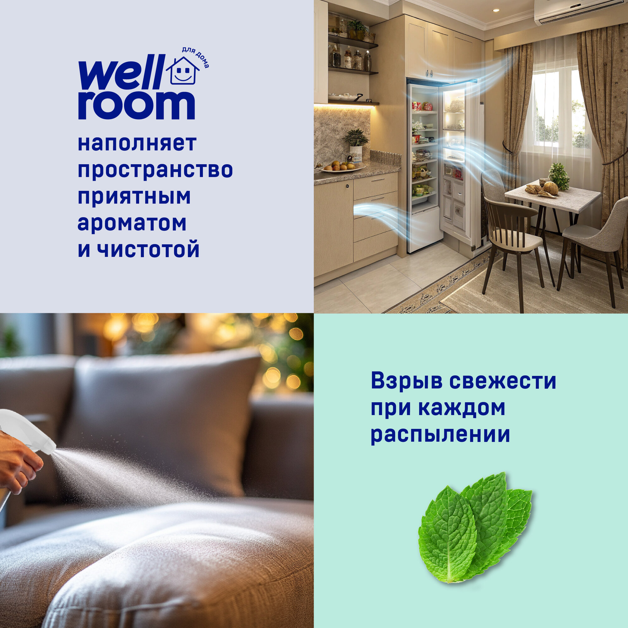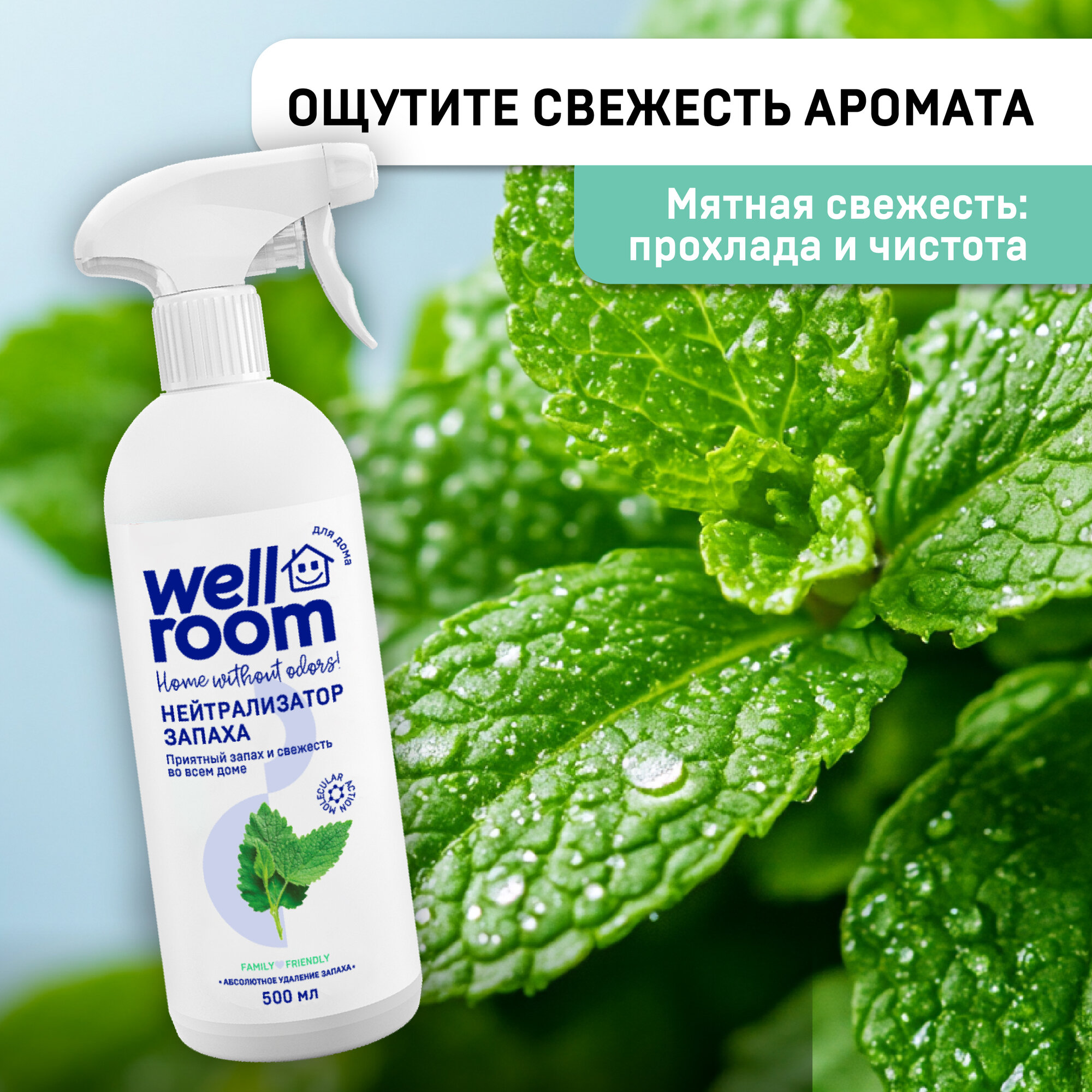 Универсальный нейтрализатор запахов Wellroom, антитабак, мята, 500 мл интересное: