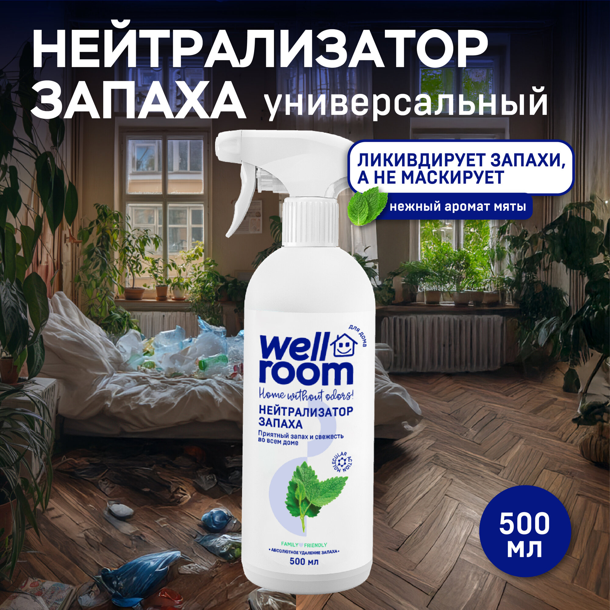Купить Универсальный нейтрализатор запахов Wellroom, антитабак, мята, 500 мл