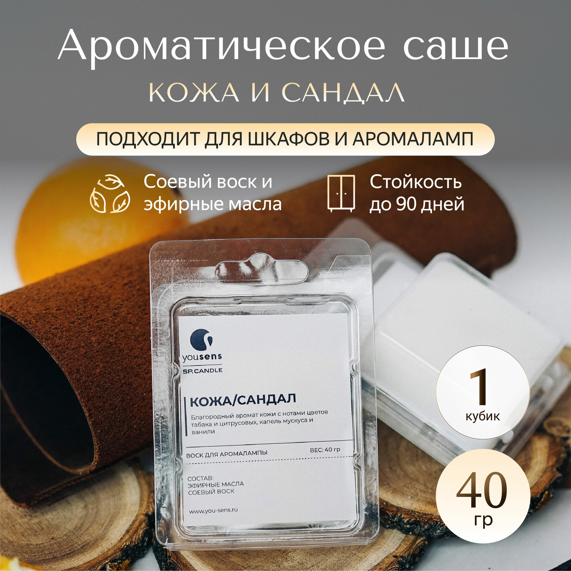 Саше Yousens "Кожа и Сандал", для шкафов и белья, ручной принцип работы, 40 г интересное: