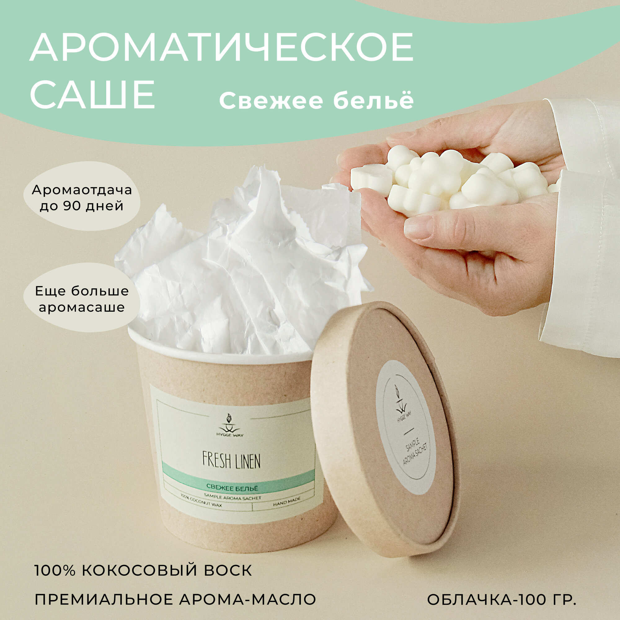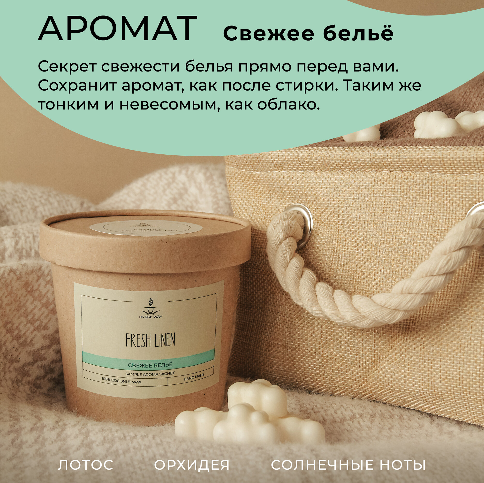 Купить Саше для шкафа и белья ароматическое "Hygge Way". Ароматизатор в шкаф и мелтсы для одежды "АСС Fresh Linen"