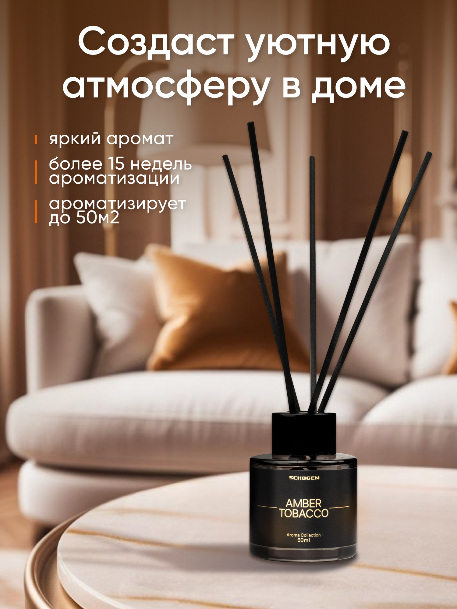 Аромадиффузор SCHOGEN Амбра и Табак, с палочками, аромат амбра/кедр/табак/чернослив, 50 мл интересное: