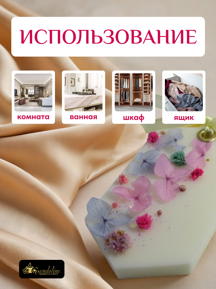 Аромасаше "Пудра и шелк" ручной работы из соевого воска и сухоцветами интересное: