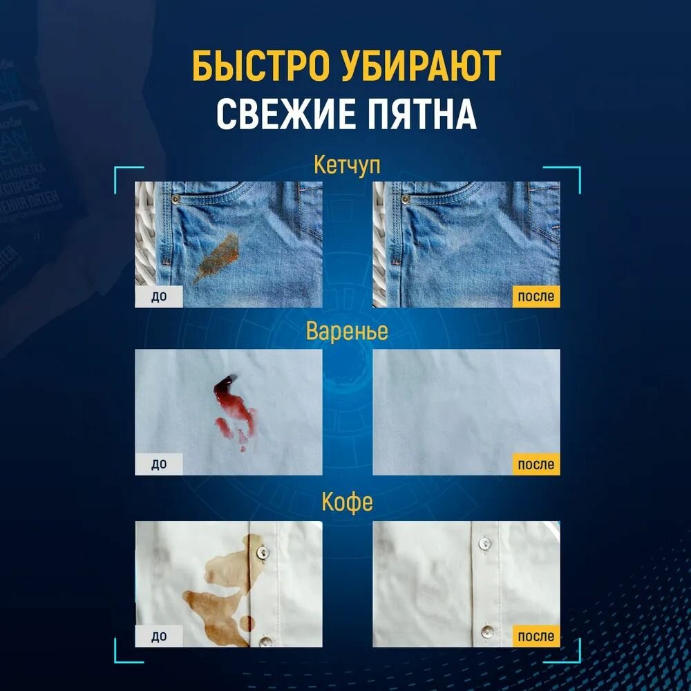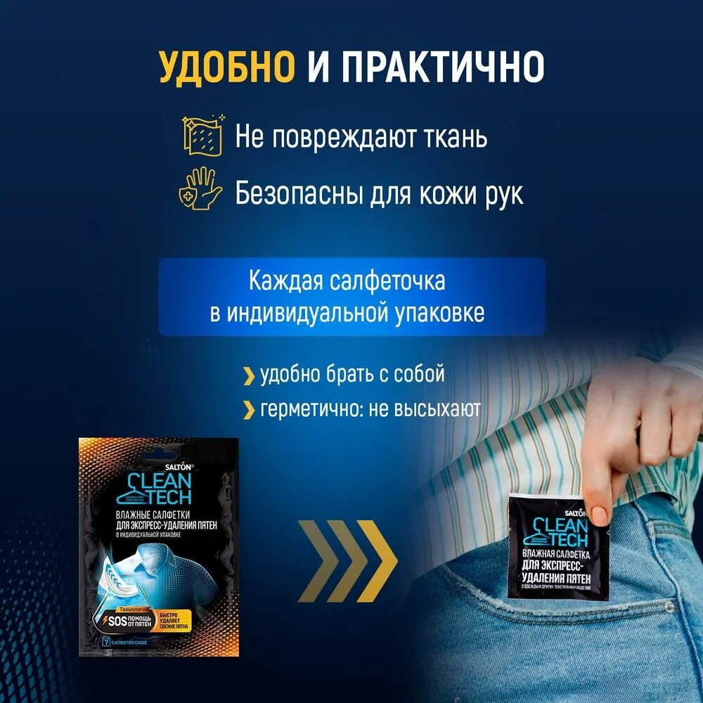 14 шт. Салфетки для одежды против пятен в индивидуальной упаковке, Salton CleanTech, пятновыводитель для белья, 7 шт x 2 уп. интересное: