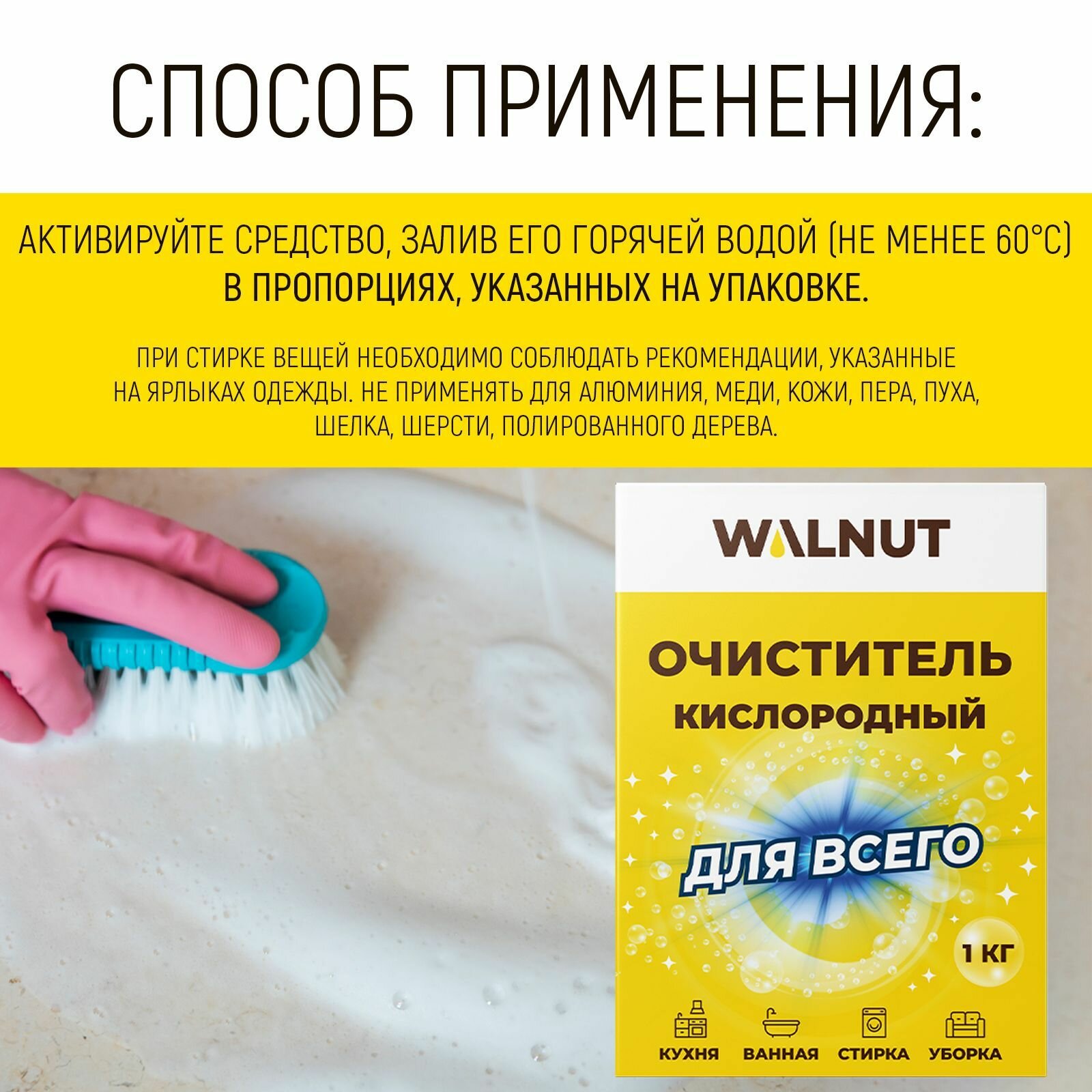 Пятновыводитель универсальный для дома WALNUT, кислородный, 1 кг интересное: