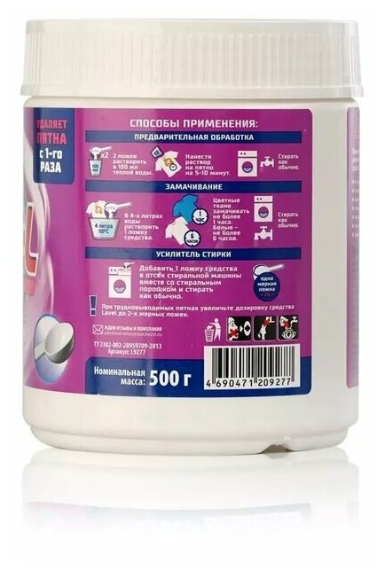 Универсальный пятновыводитель Lavel " Активный кислород " 500г*4 шт интересное: