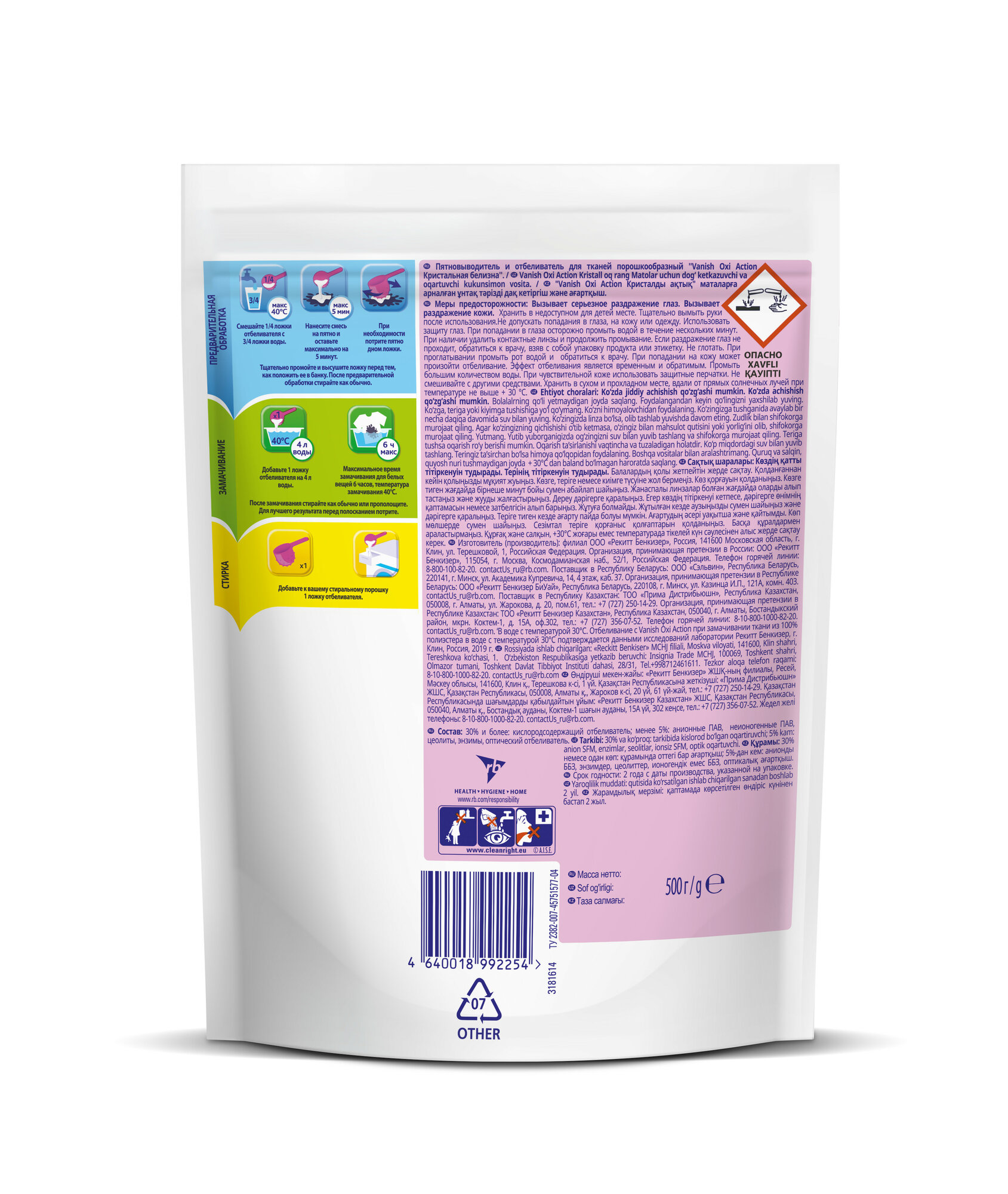 Купить Vanish пятновыводитель и отбеливатель Oxi Action Кристальная белизна 500 г в пластиковом пакете