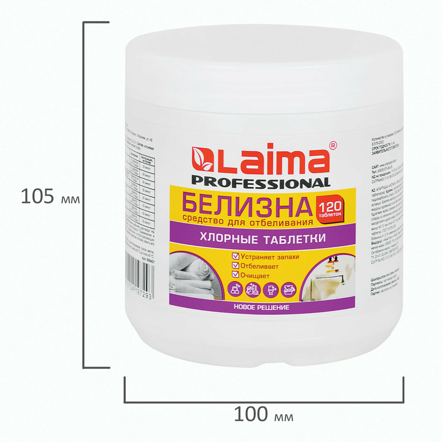 Белизна в хлорных таблетках для отбеливания дезинфекции и уборки 120 шт, 0,4кг, банка, LAIMA, 609421 интересное:
