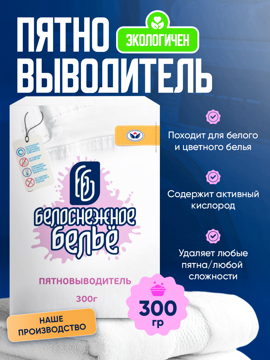 Пятновыводитель, Белоснежное Белье, с активным кислородом, порошок, 300г интересное: