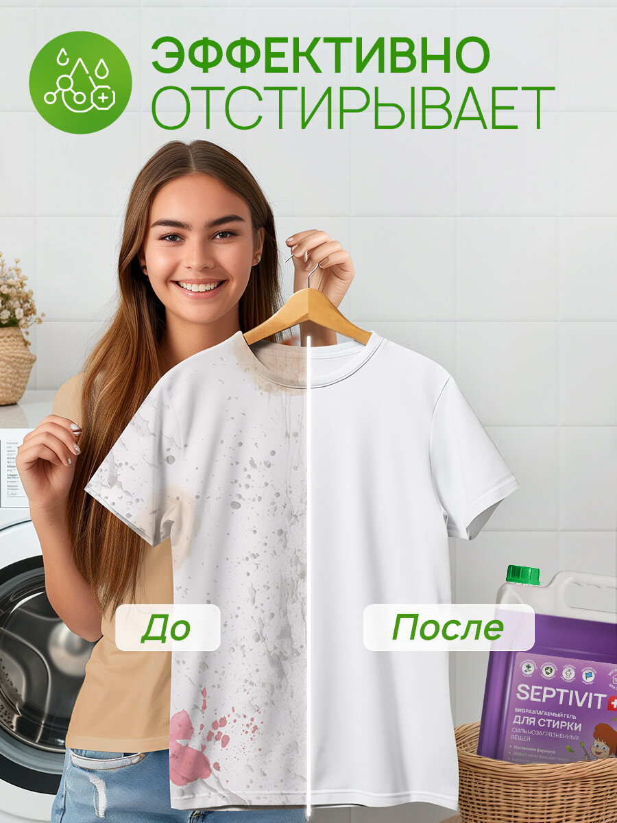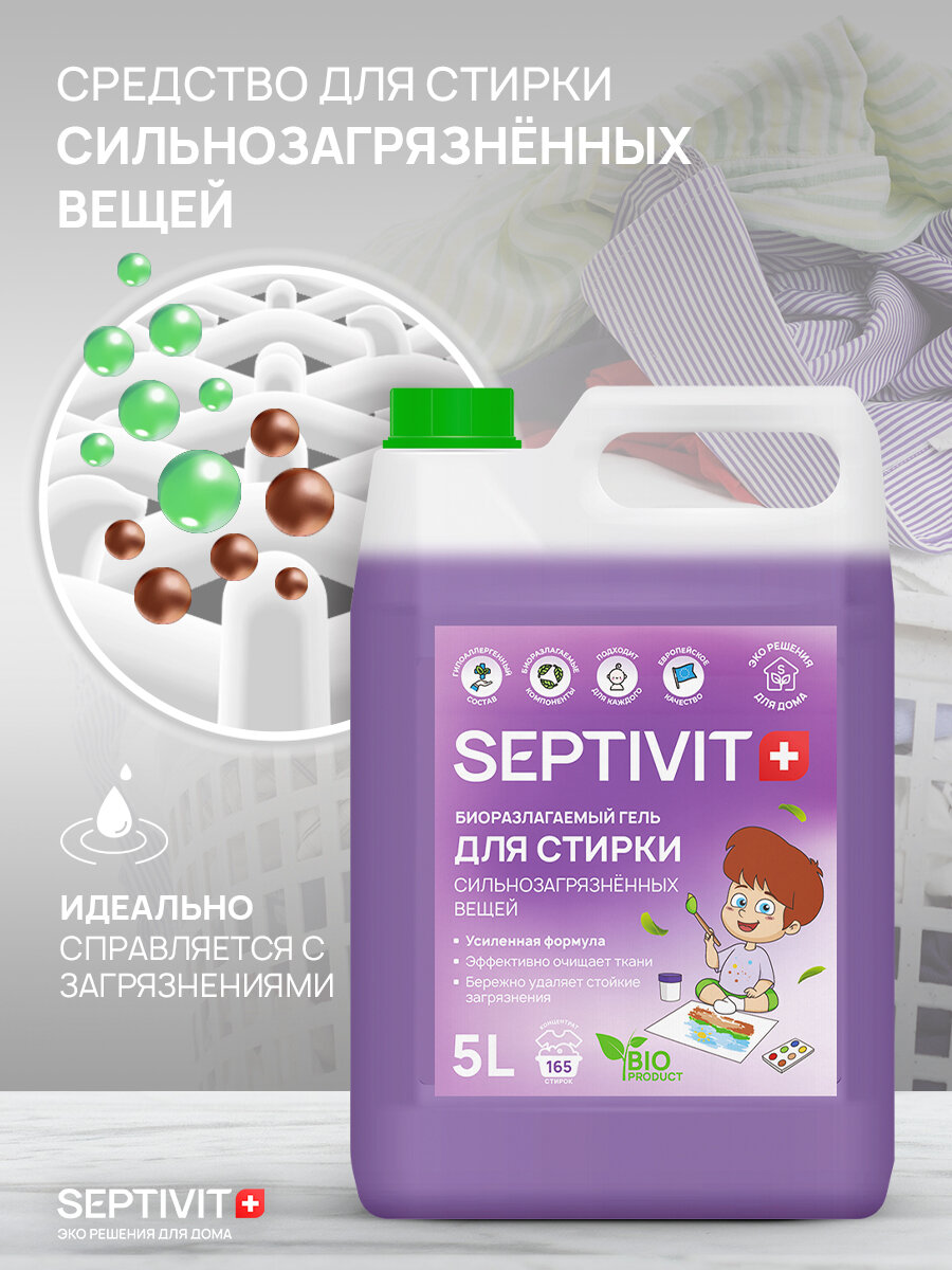 Гель для стирки Septivit, для сильнозагрязненных тканей, канистра, 5 л интересное: