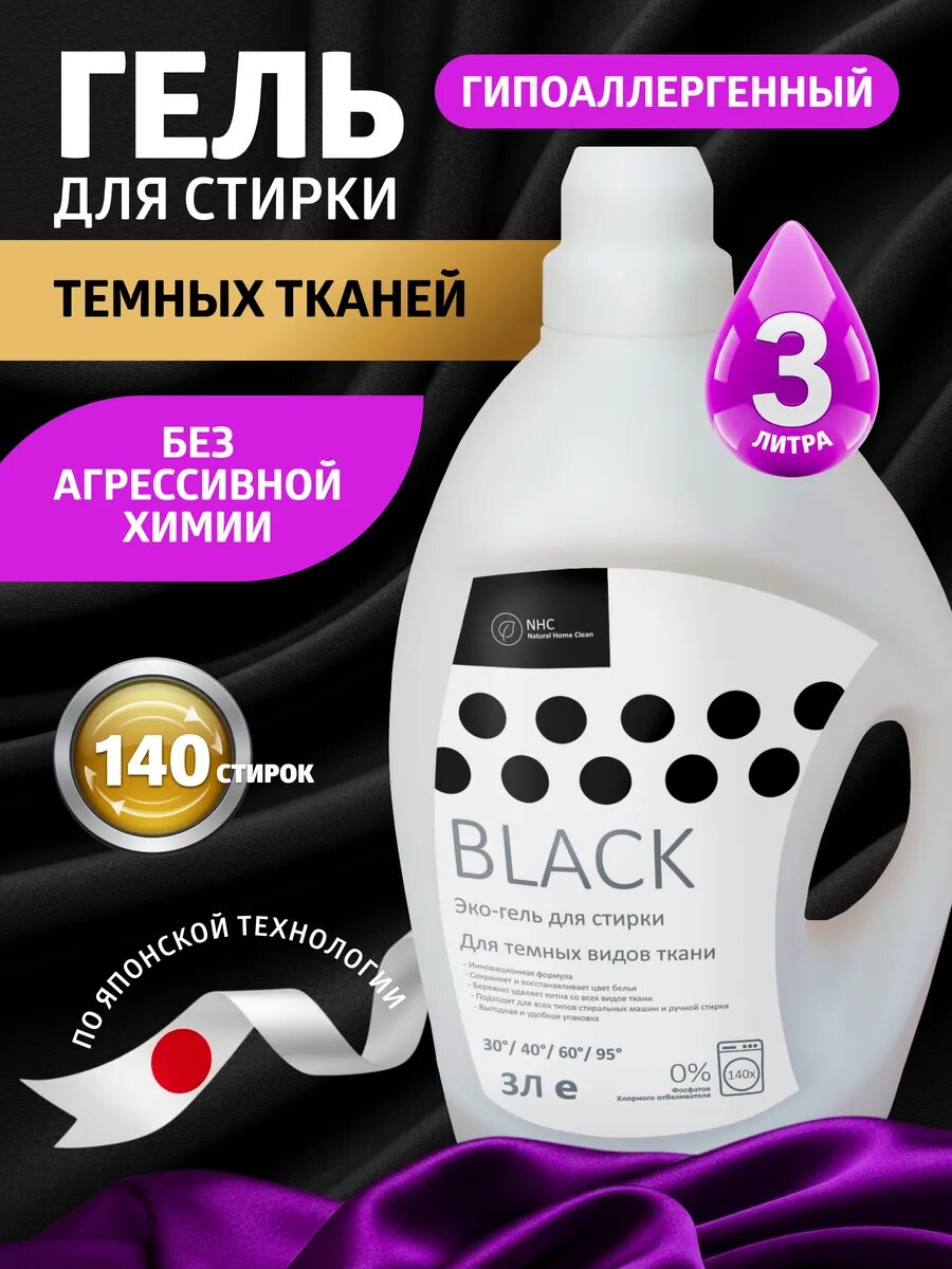 Гель для стирки NHC BLACK, гипоаллергенный, для черных и тёмных тканей, 3л. интересное: