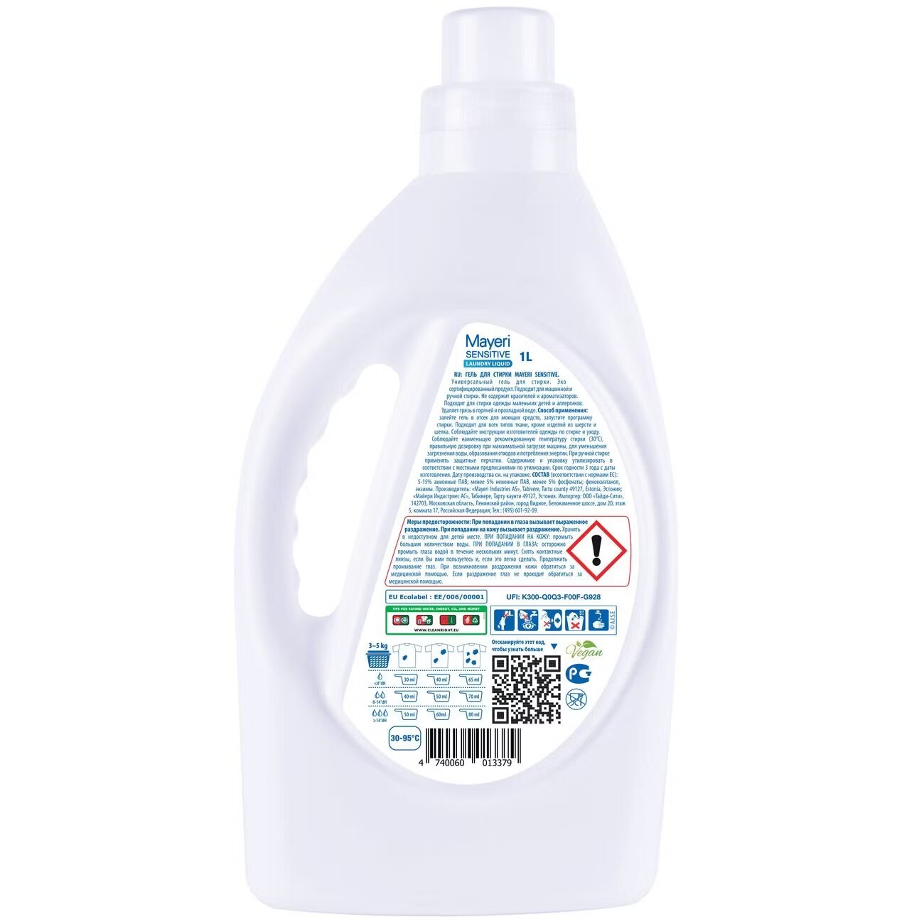 Купить Mayeri Sensitive ЭКО Гель для стирки цветного и белого белья 1 л
