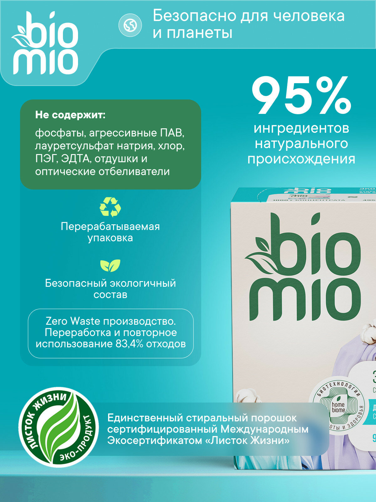 BioMio. Эко порошок для стирки цветного белья. Концентрат. Без запаха 1000 г (2 шт.) интересное: