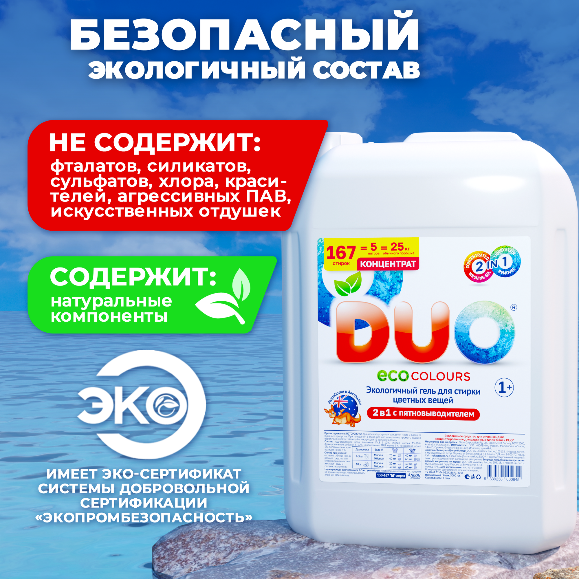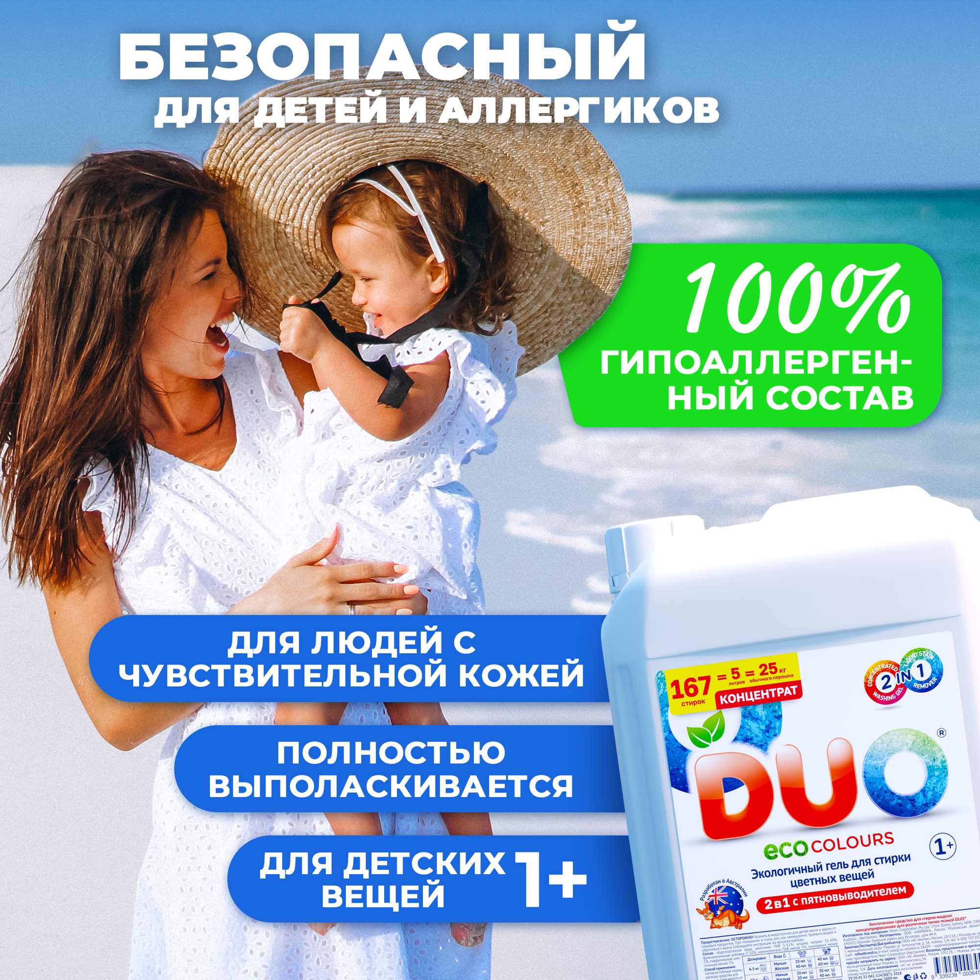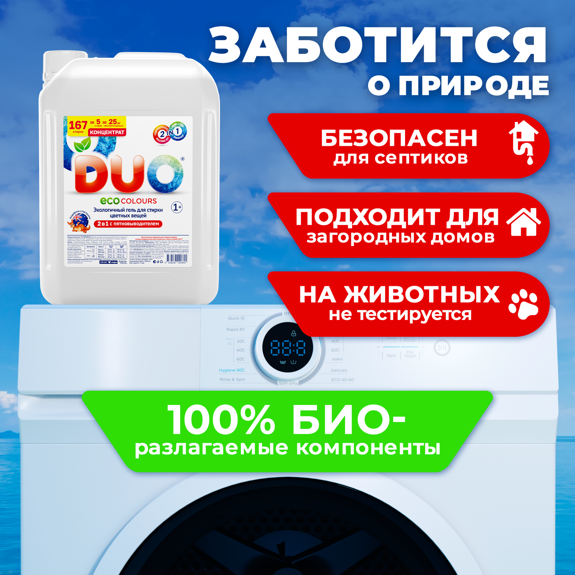 Купить Гель для стирки DUO, с пятновыводителем, 5л, для всех видов тканей