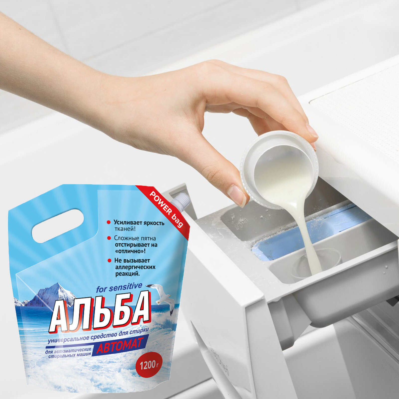 Купить Альба Автомат, концентрированное средство для стирки в автоматических стиральных машинах в воде любой жесткости, 1200 г