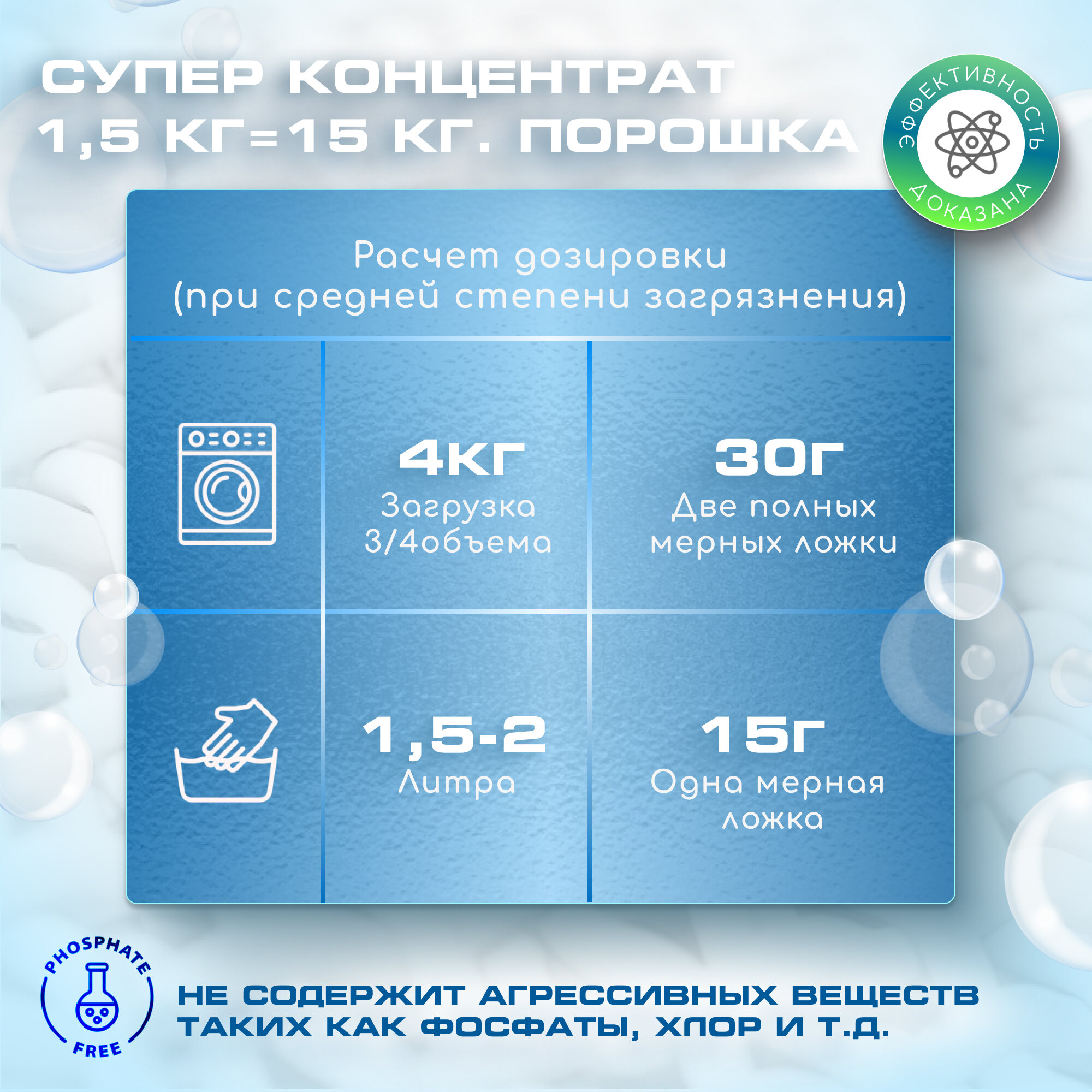 Концентрированный стиральный порошок для цветного и белого белья KENSAI 1,5 кг интересное: